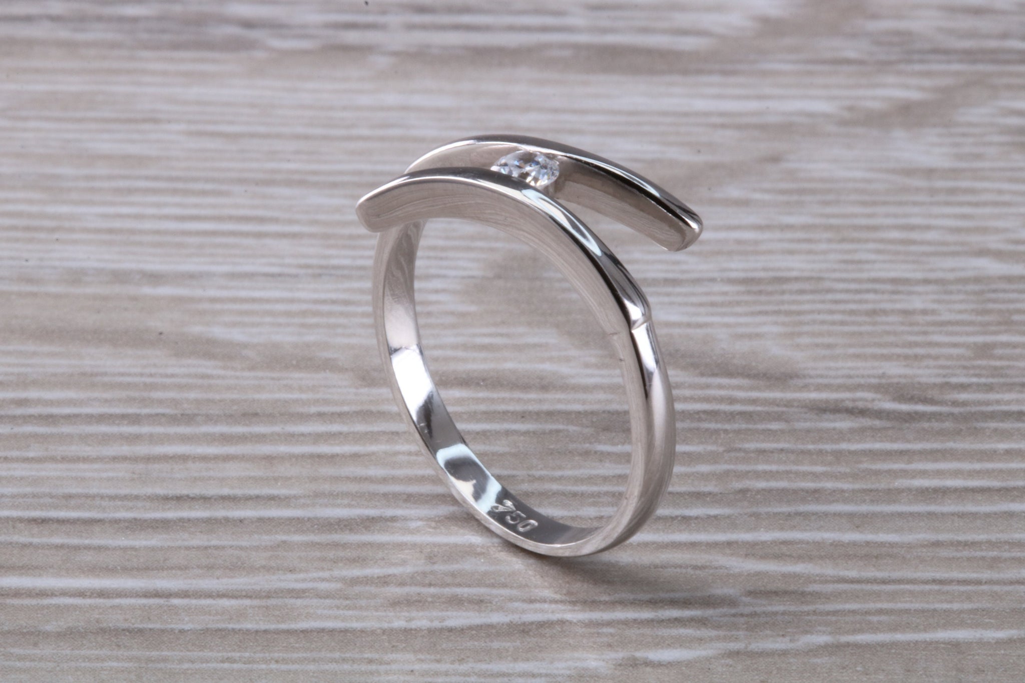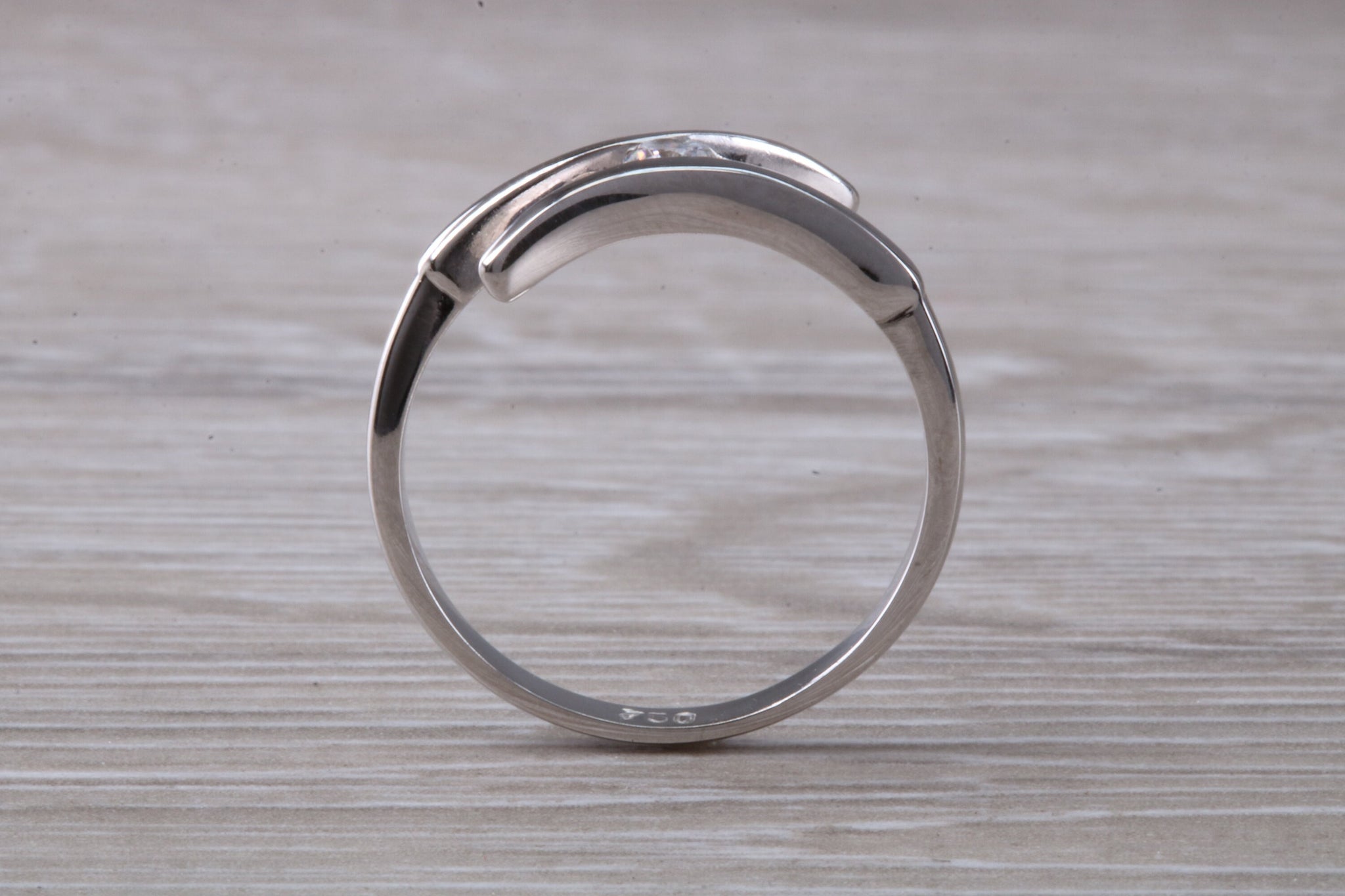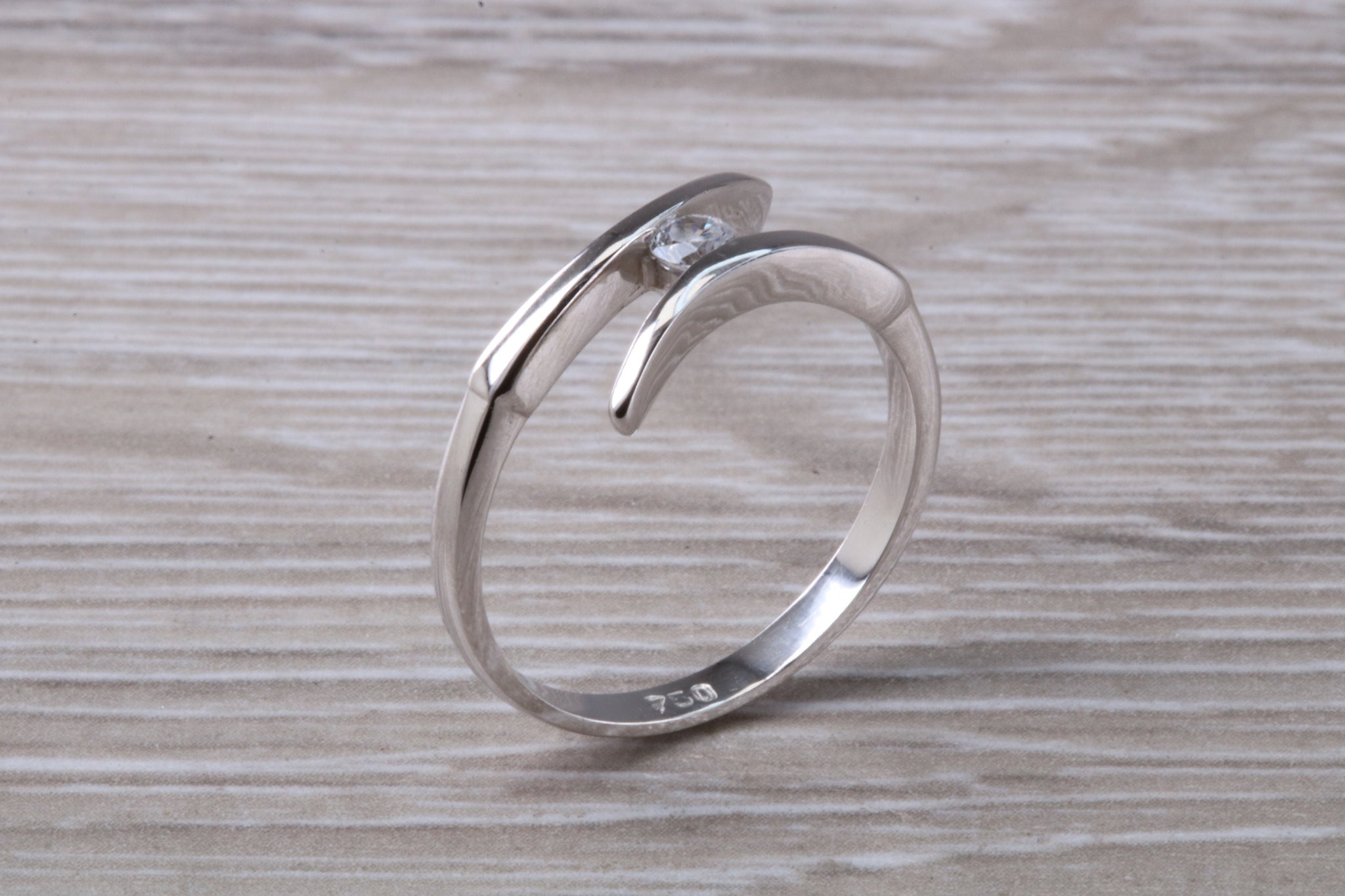 18ct white gold with 0.25 carat Round brilliant cut top graded natural diamond.