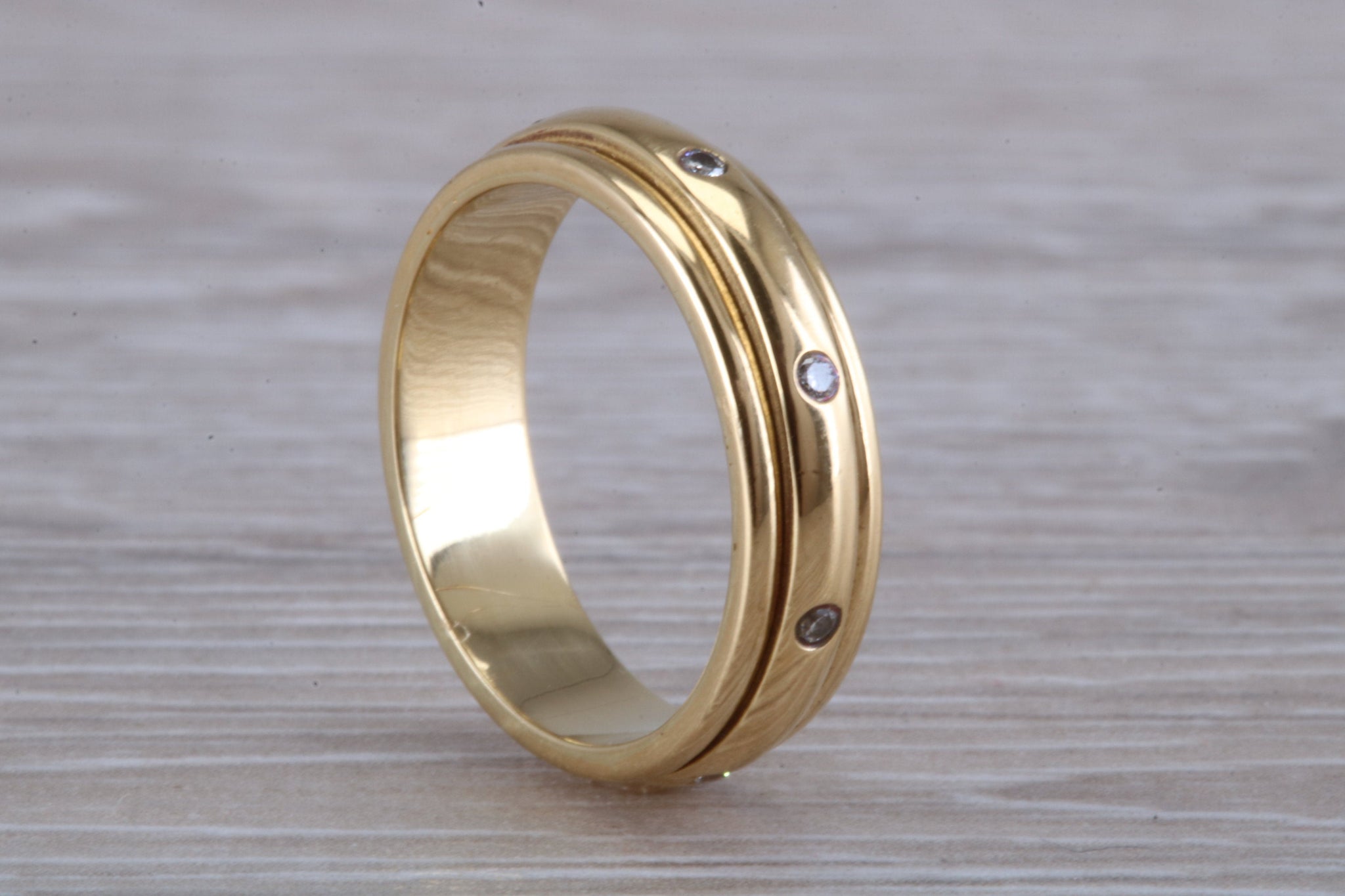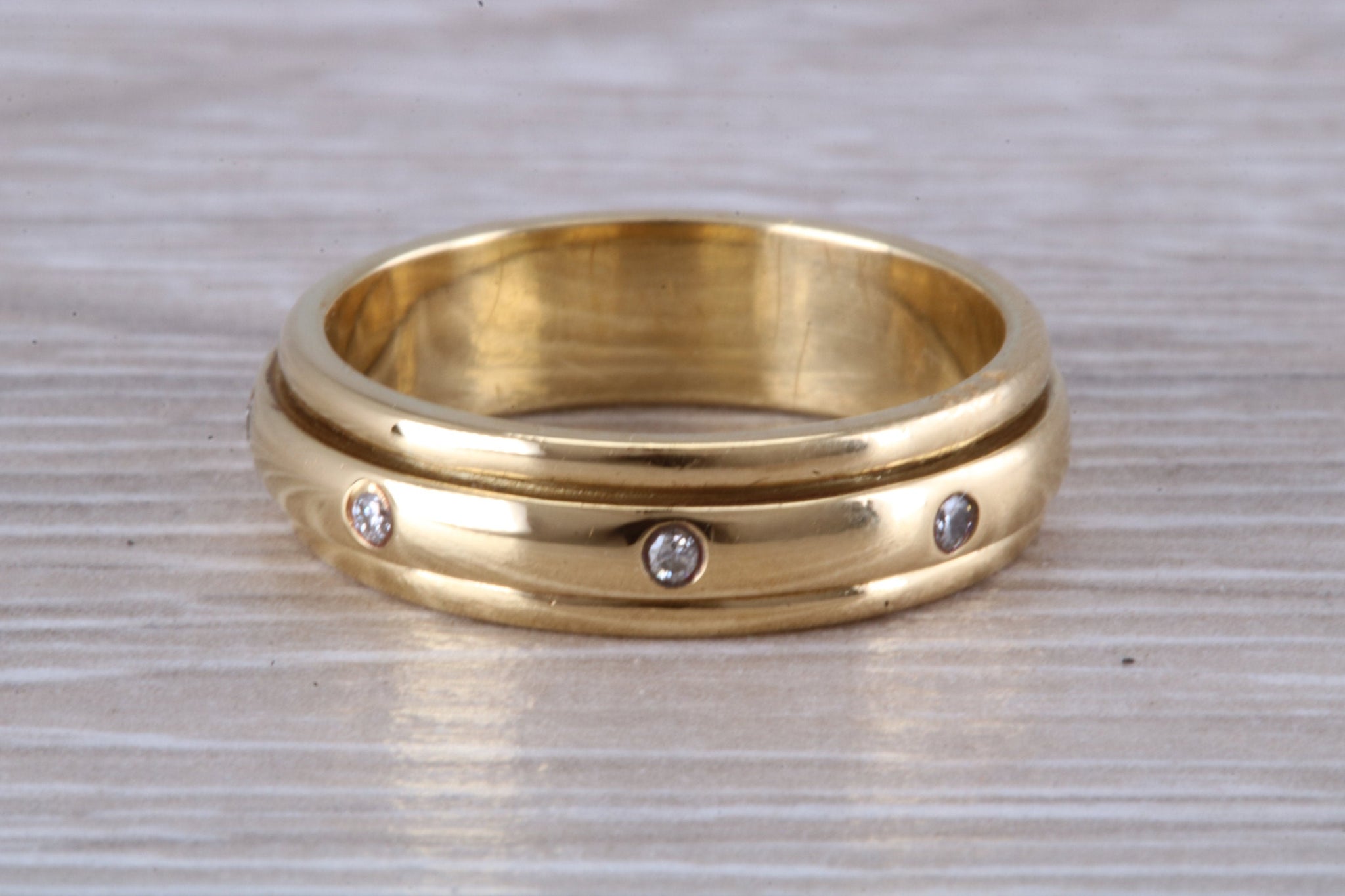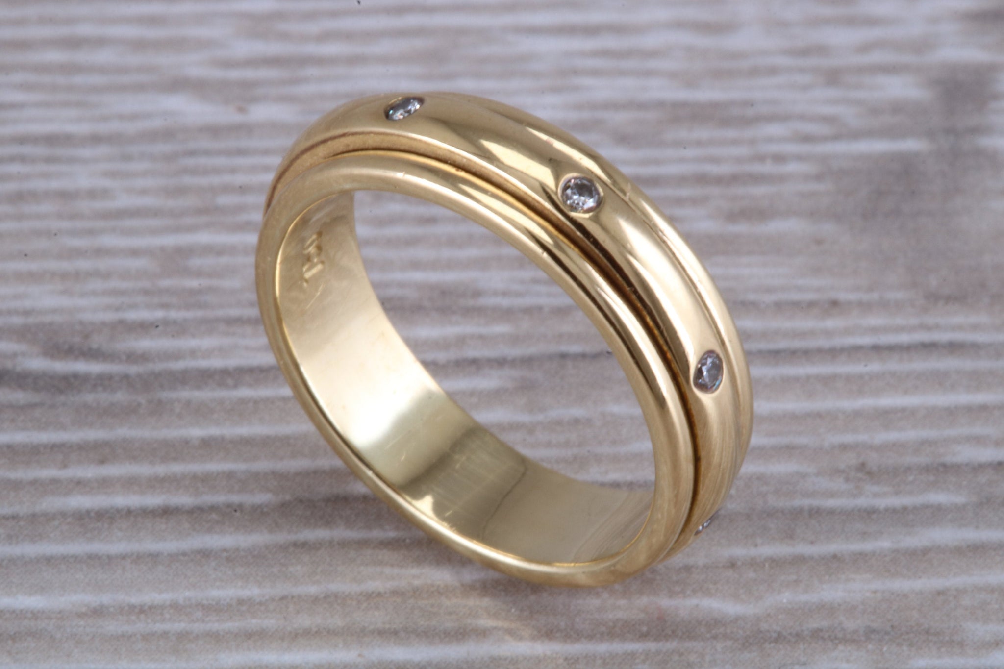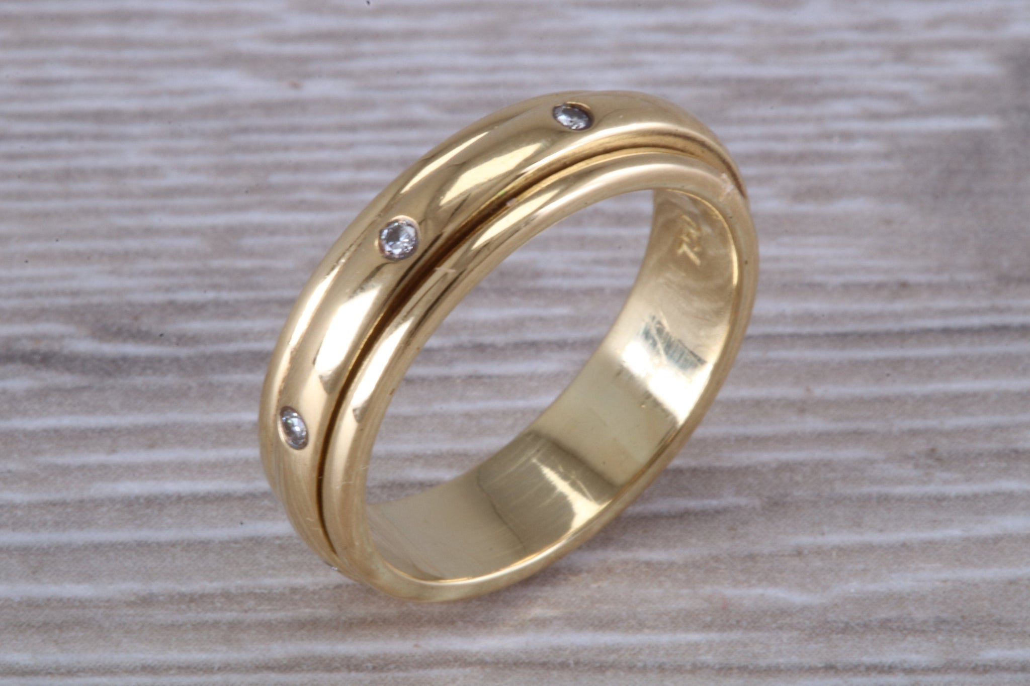 Made from 18ct white gold, measuring 5 mm wide with a 3 mm wide section in the middle that spins around