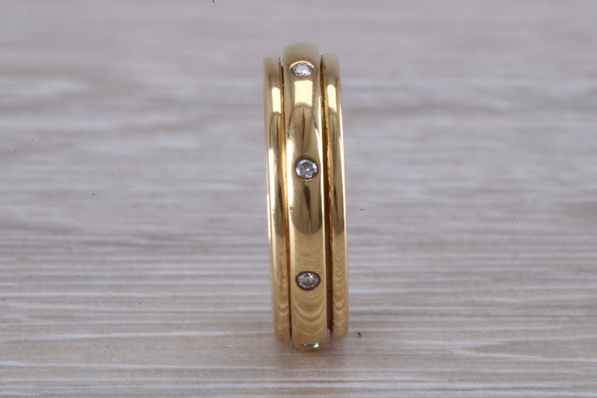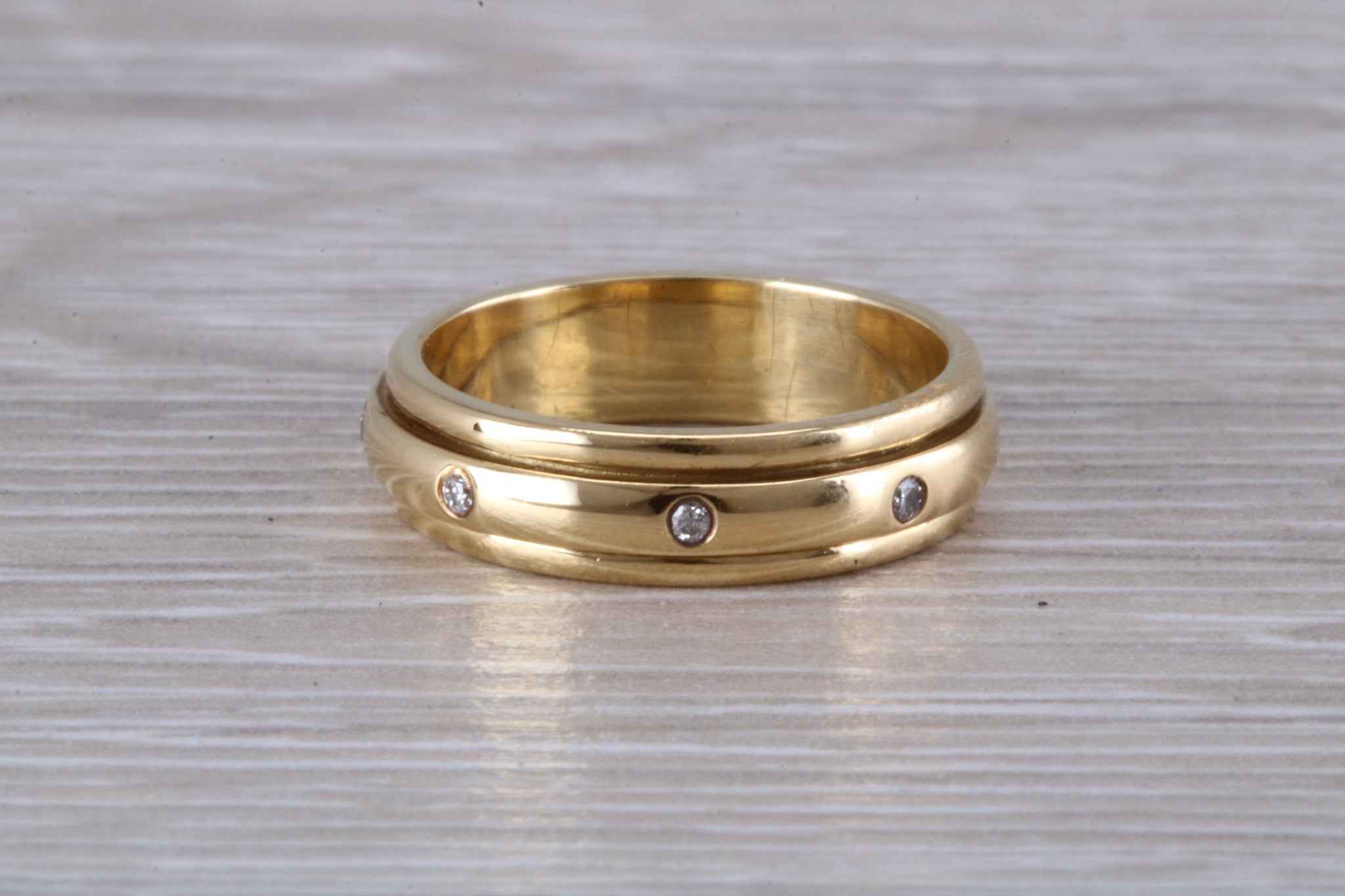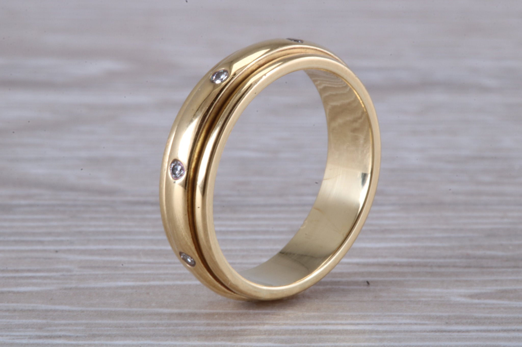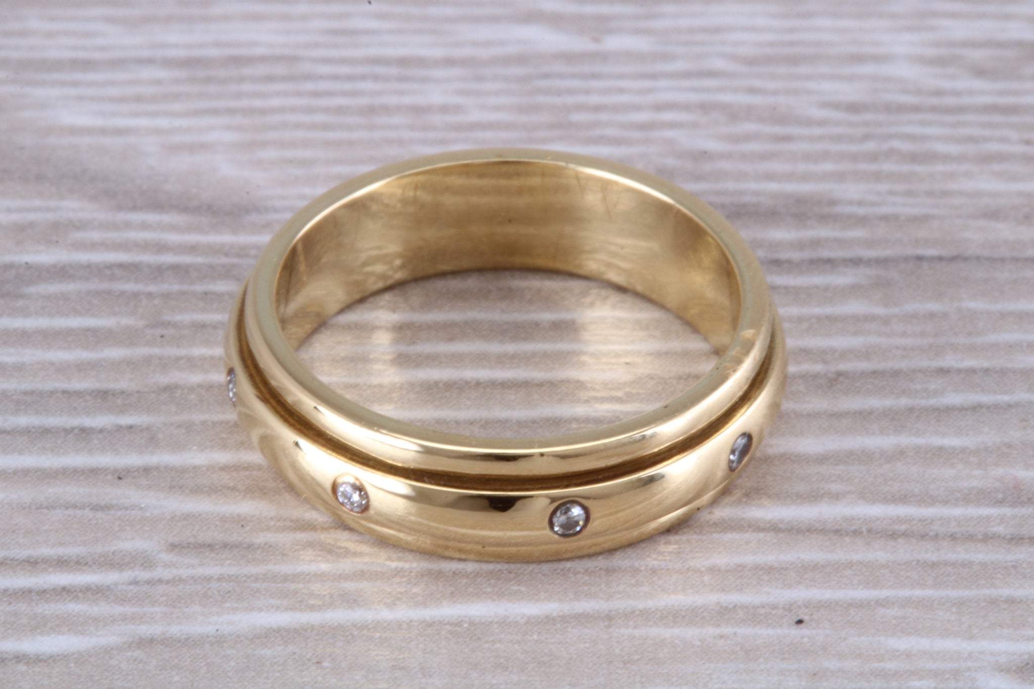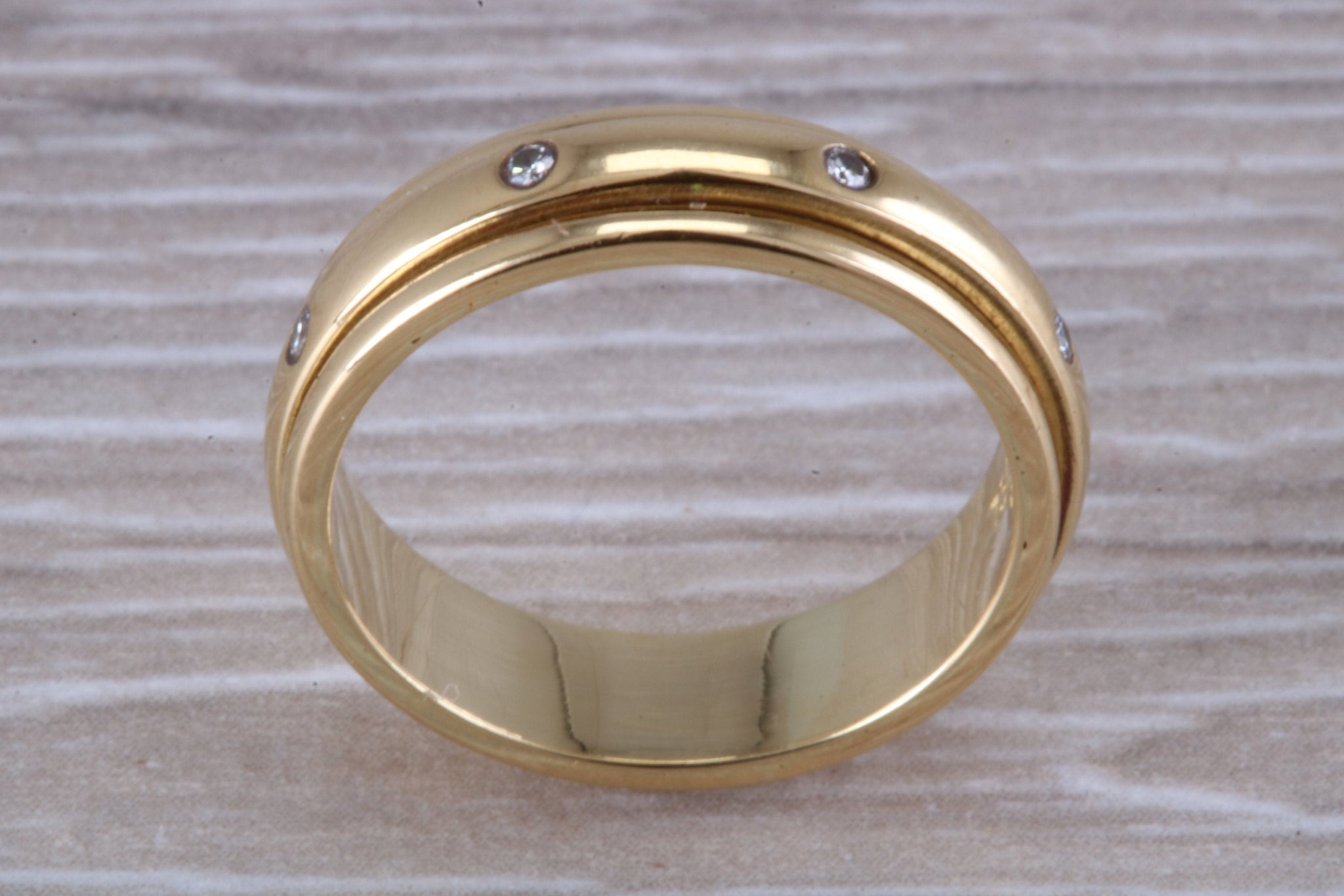 Made from 18ct white gold, measuring 5 mm wide with a 3 mm wide section in the middle that spins around