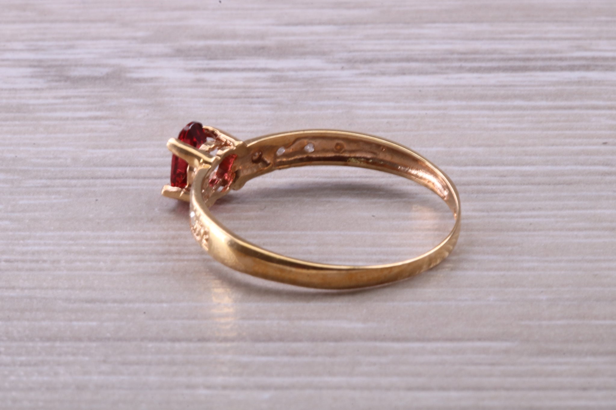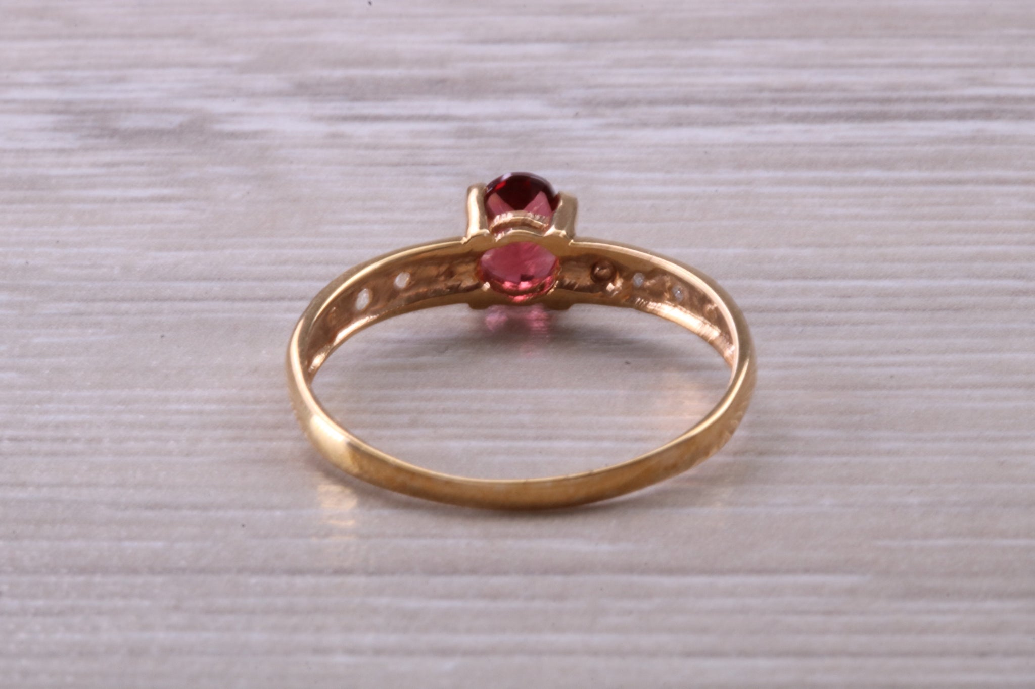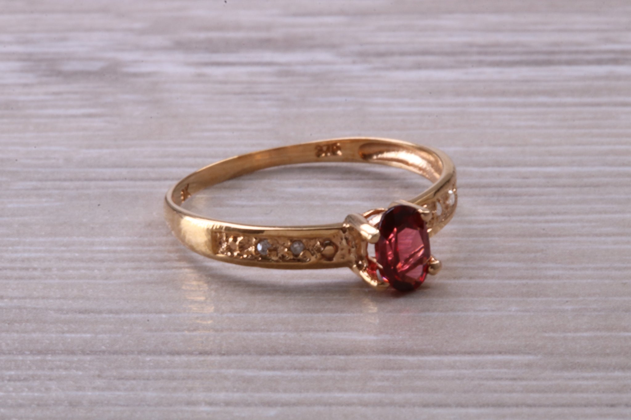 Dainty natural Garnet and Diamond gemstone ring, solid 9ct Yellow Gold with British hallmark