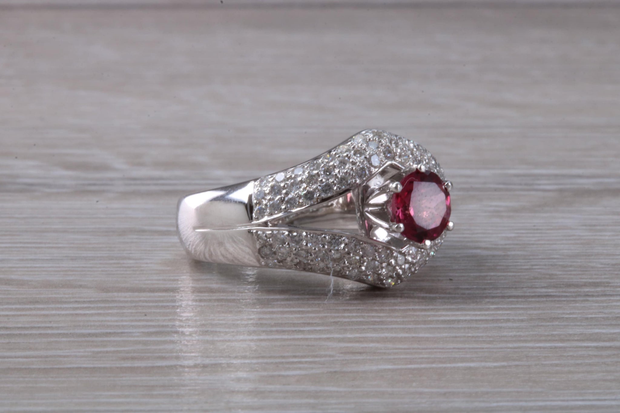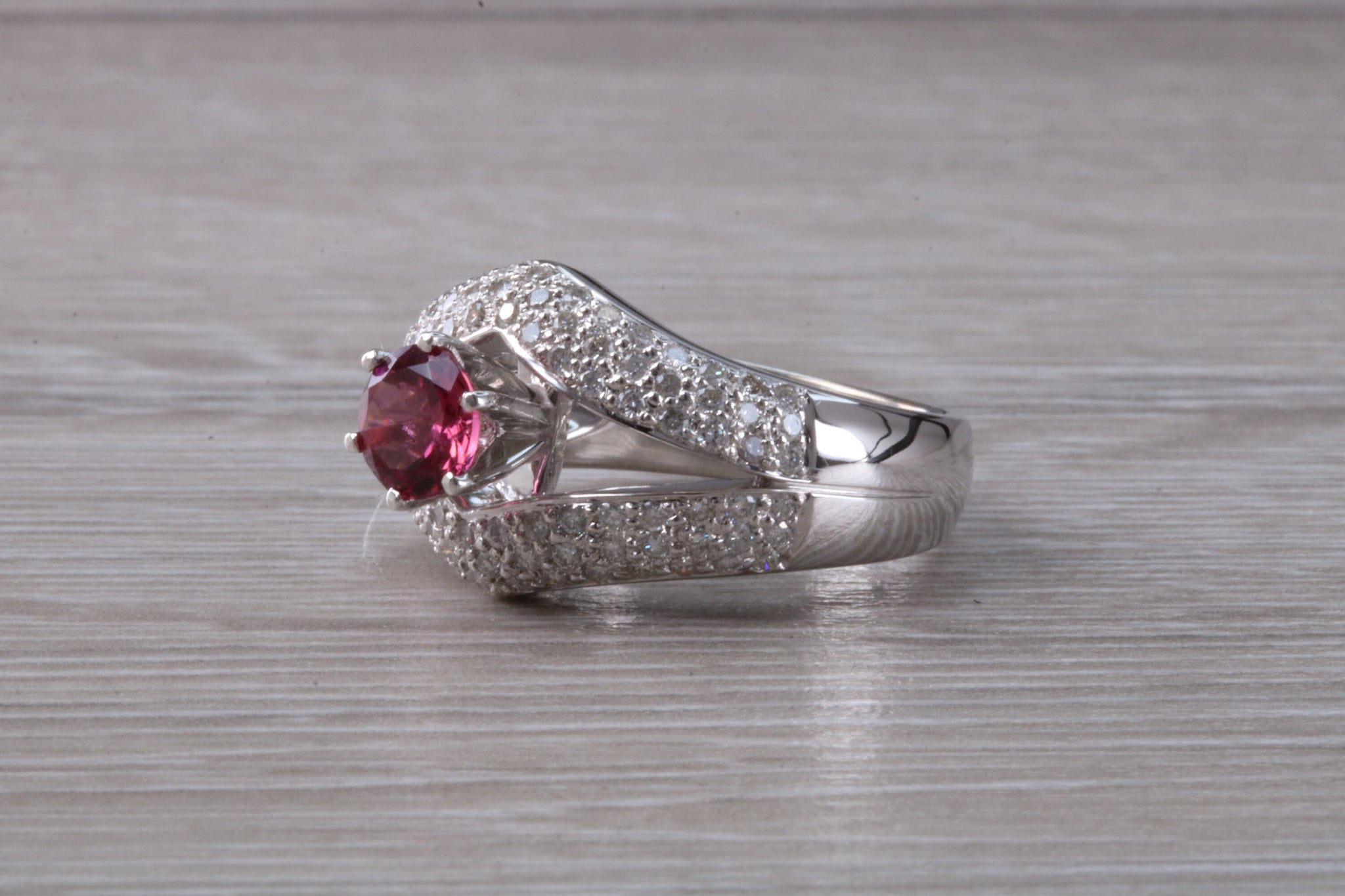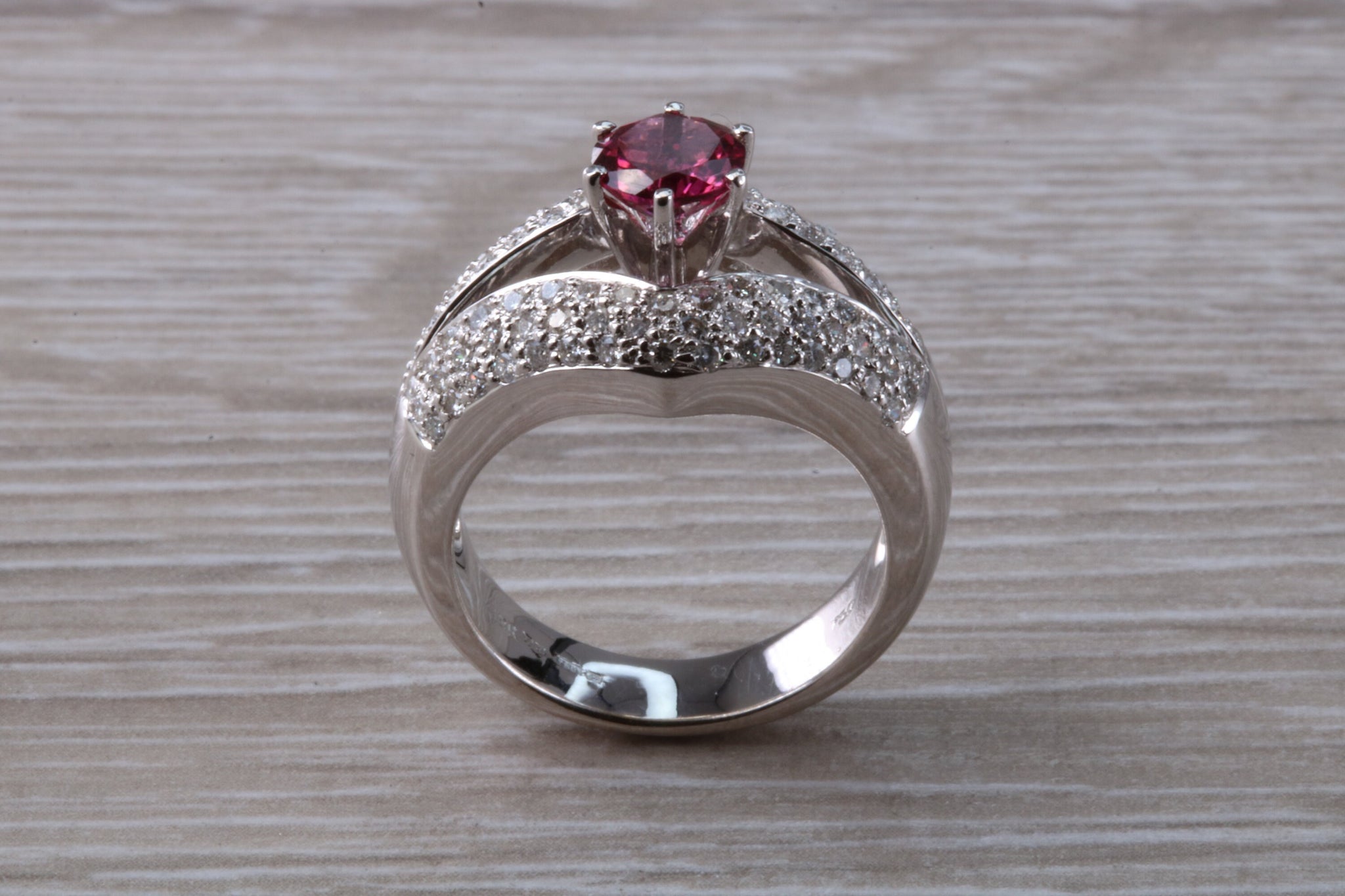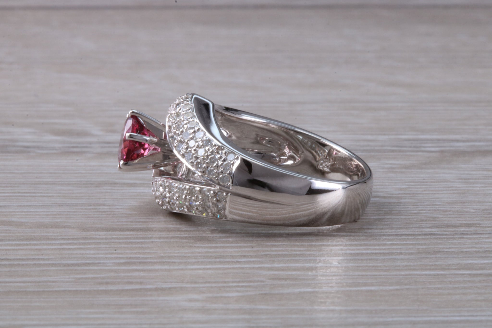 Ladies 18ct white gold ring set with top grade natural Pink Tourmaline and Top Grade round brilliant cut Diamonds