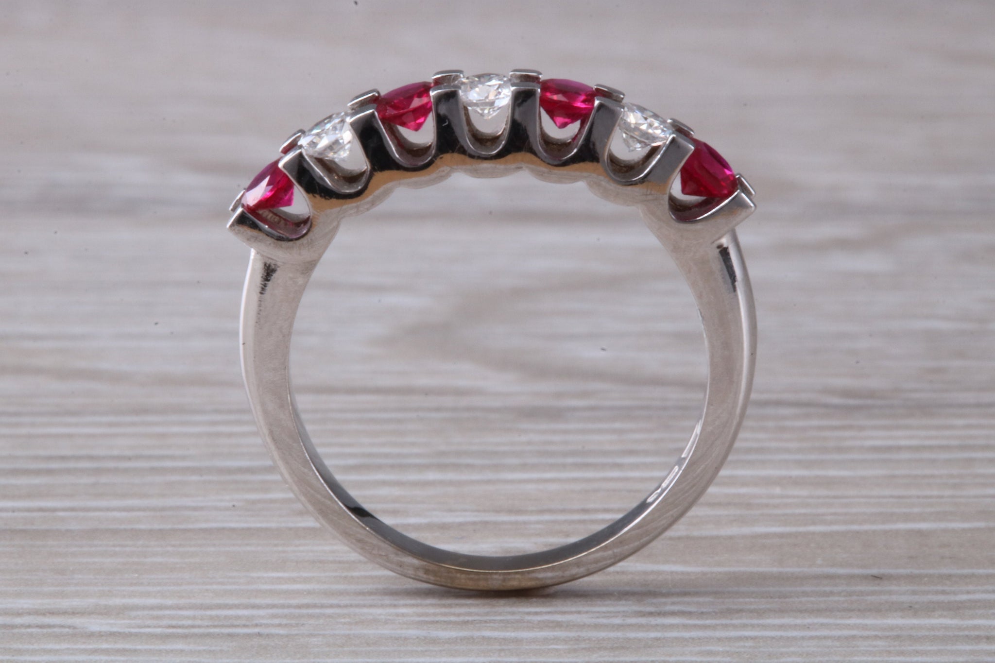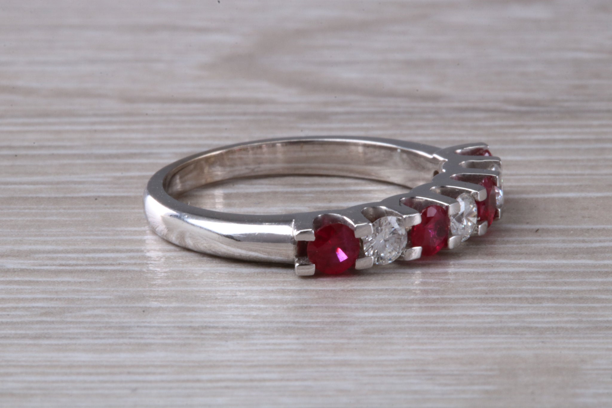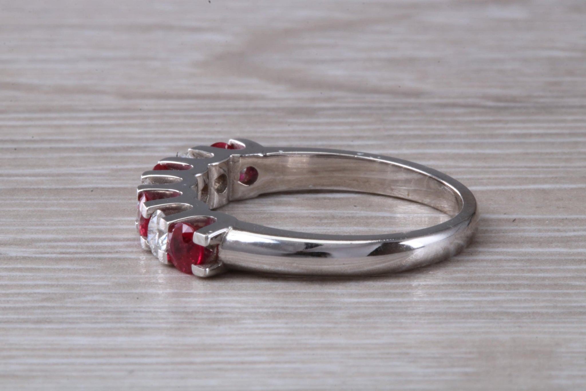 Ladies 18ct White Gold Ring set with Four Natural round cut Rubies and Three Natural round cut Diamonds