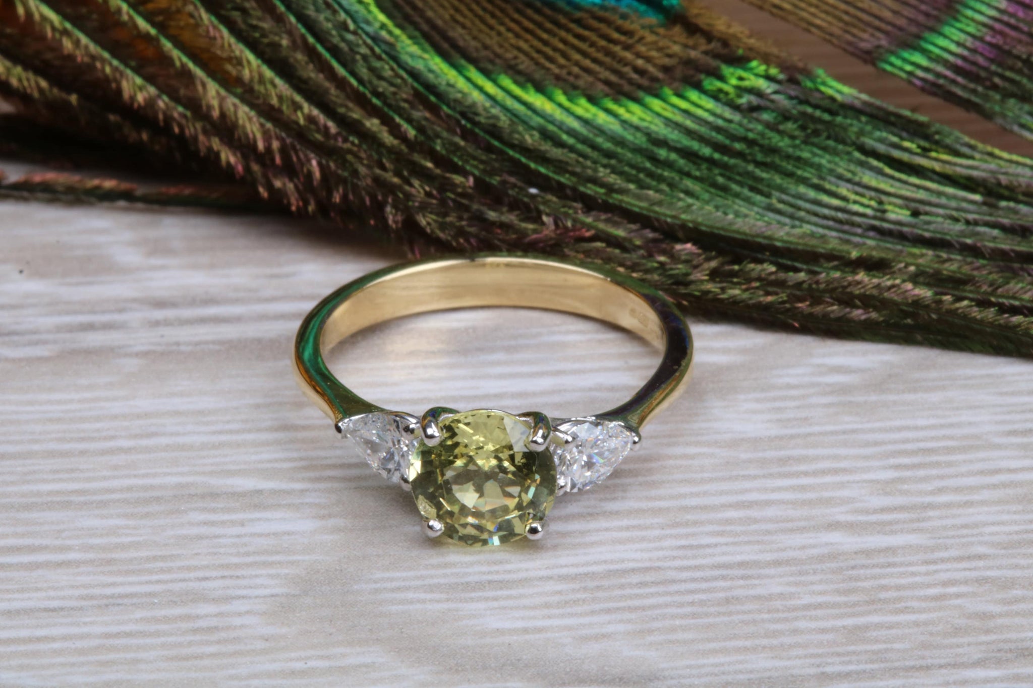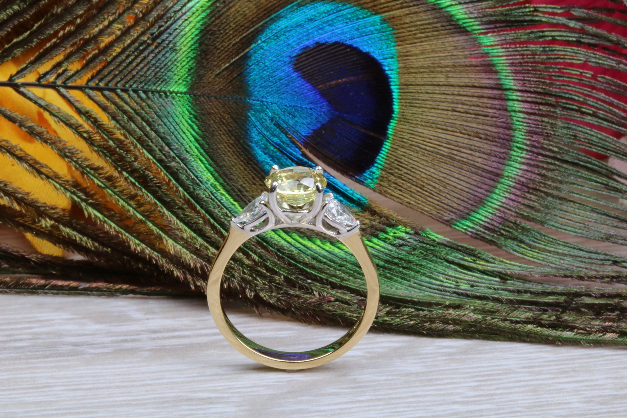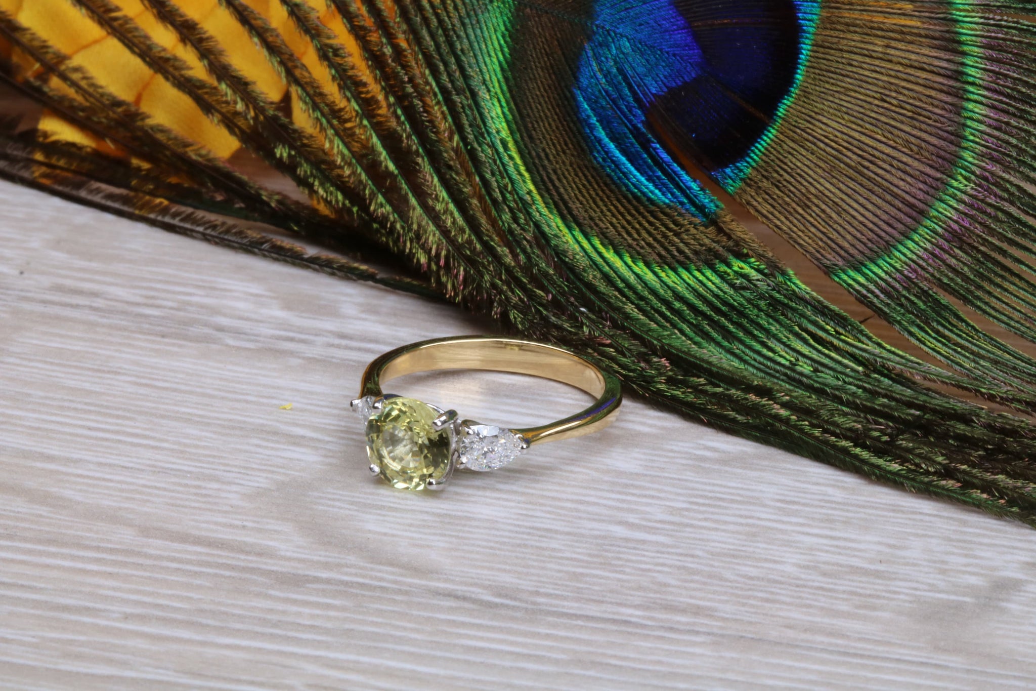All natural and none treated in any way Yellow sapphire weigh's 1.00 carats with the Diamonds each weighing 0.30 carats bringing the total gemstone weight to 1.60 carats