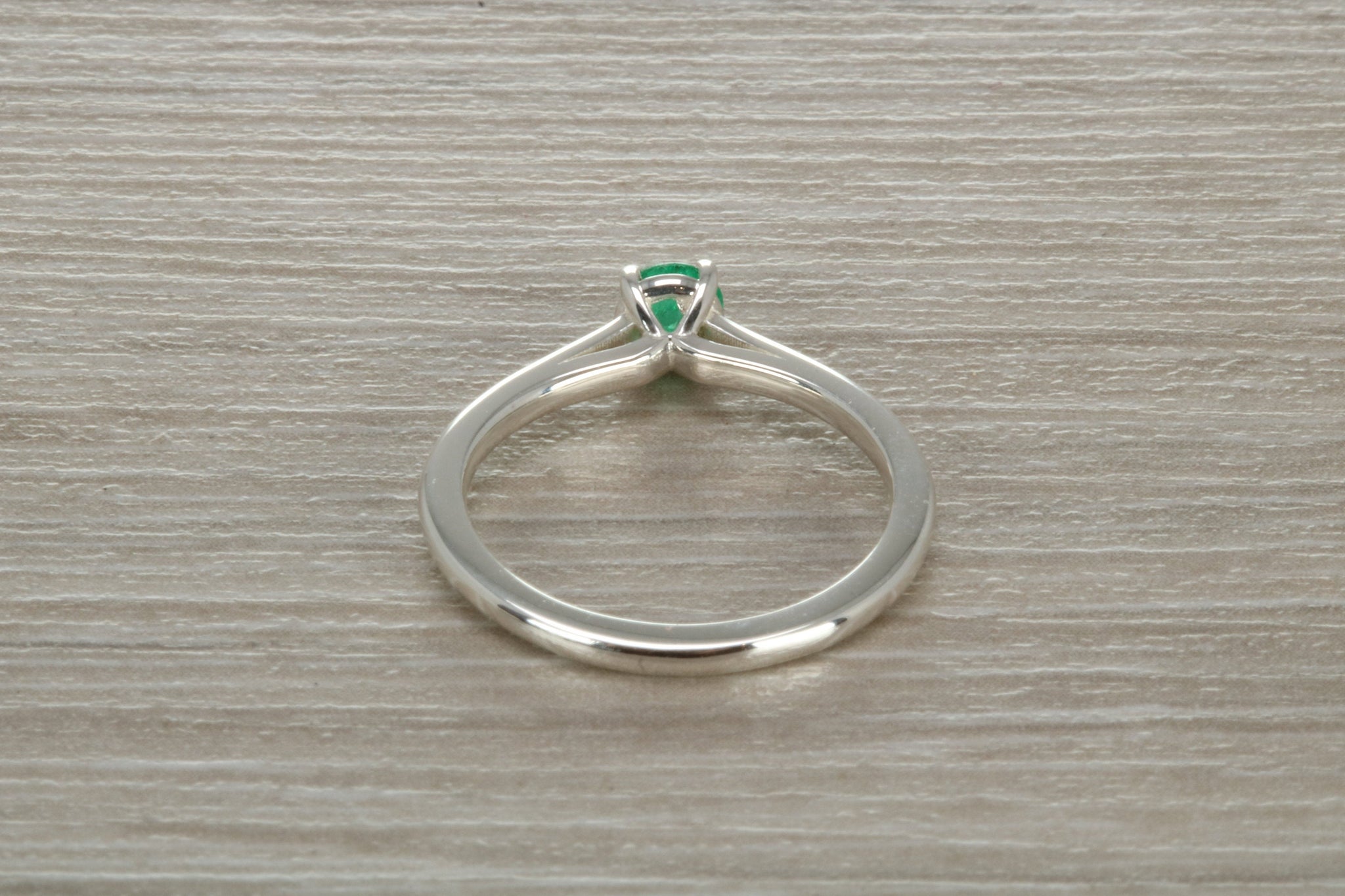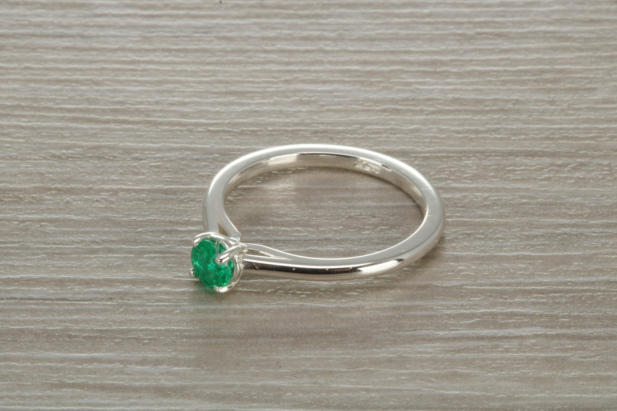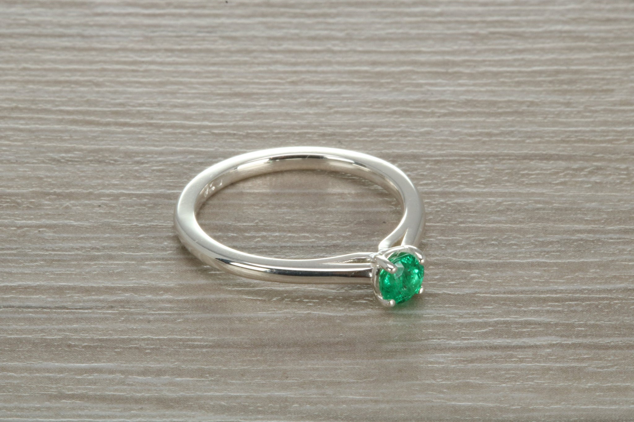Sterling silver ring set with 4 mm round brilliant cut Natural Emerald