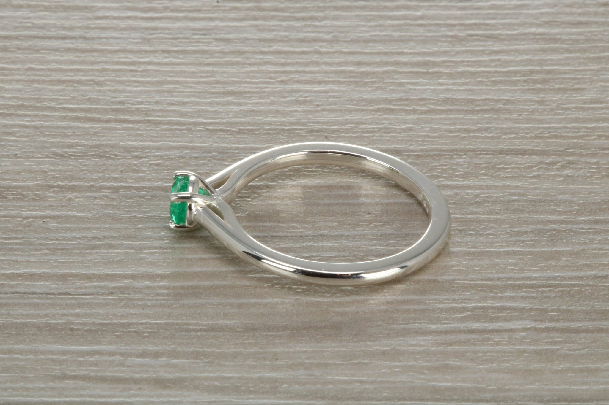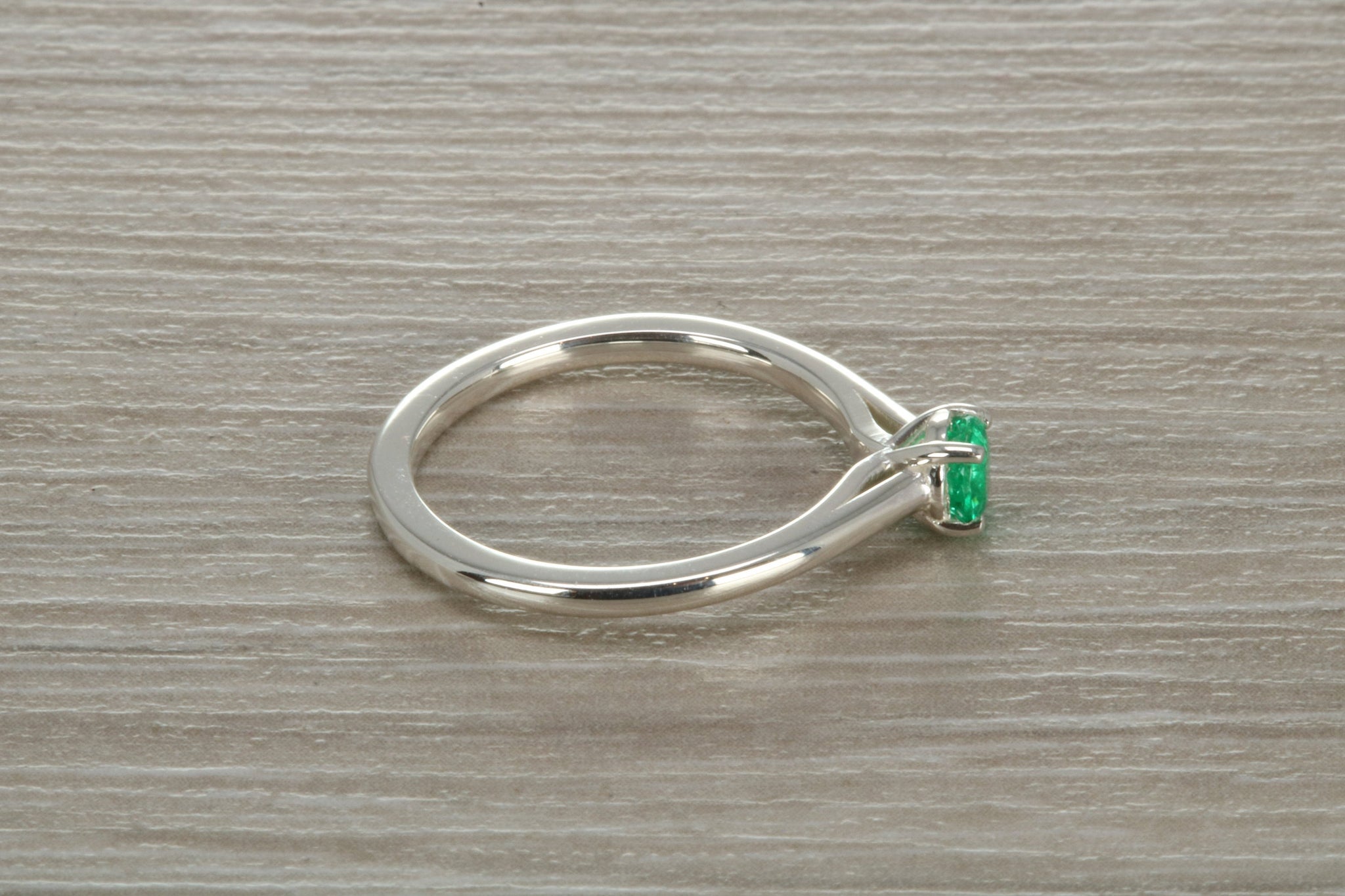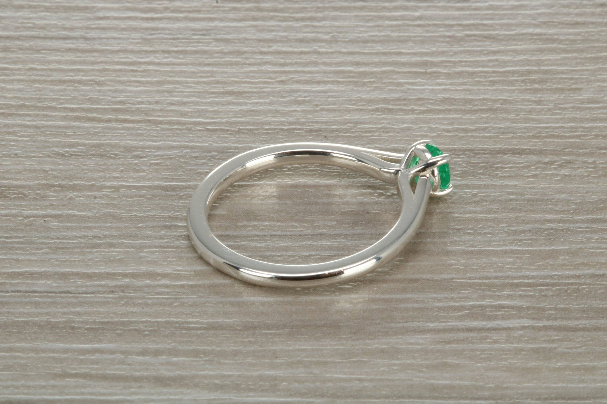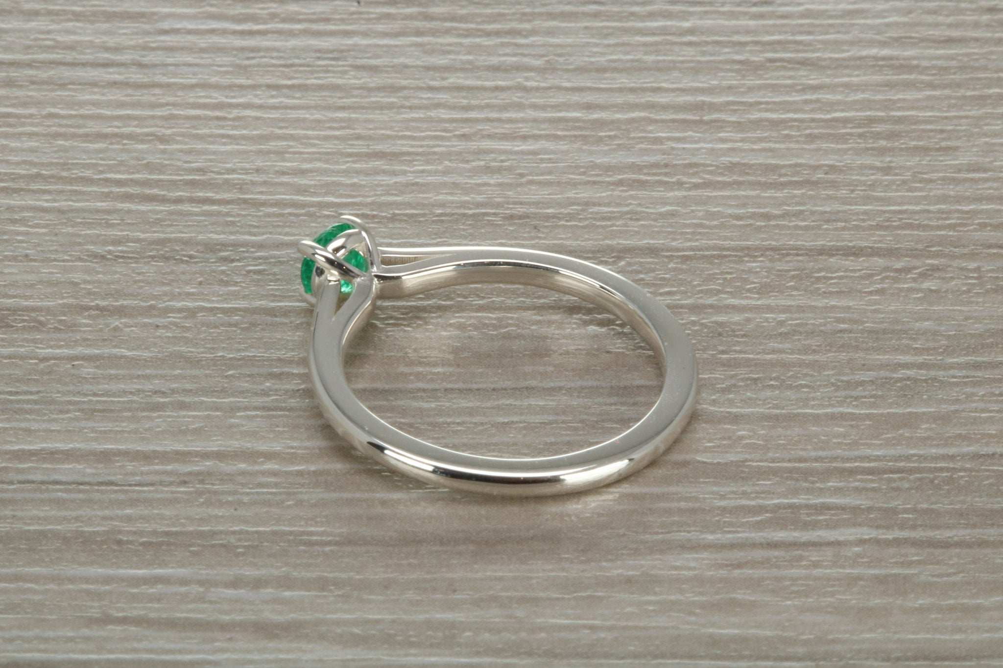 Sterling silver ring set with 4 mm round brilliant cut Natural Emerald
