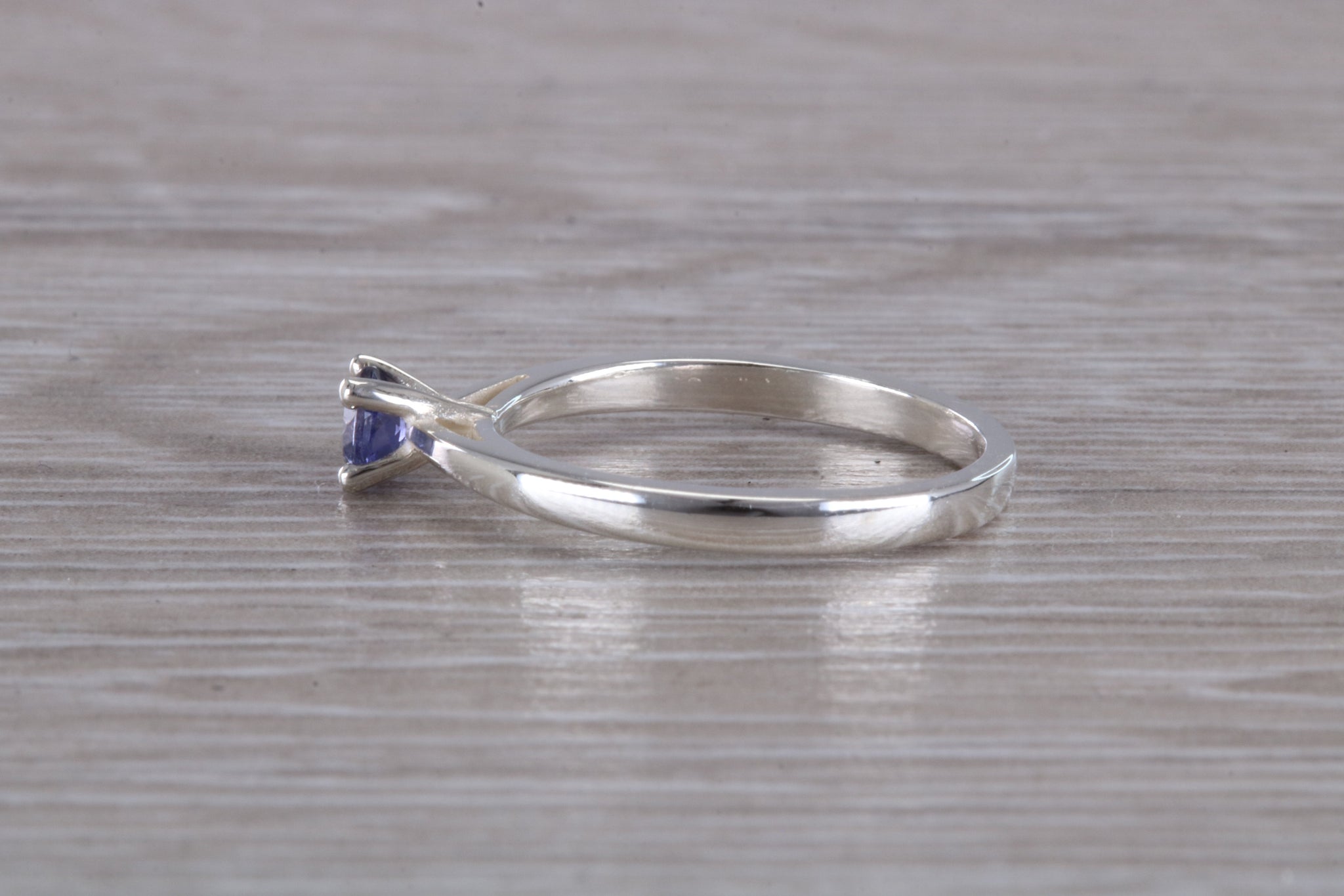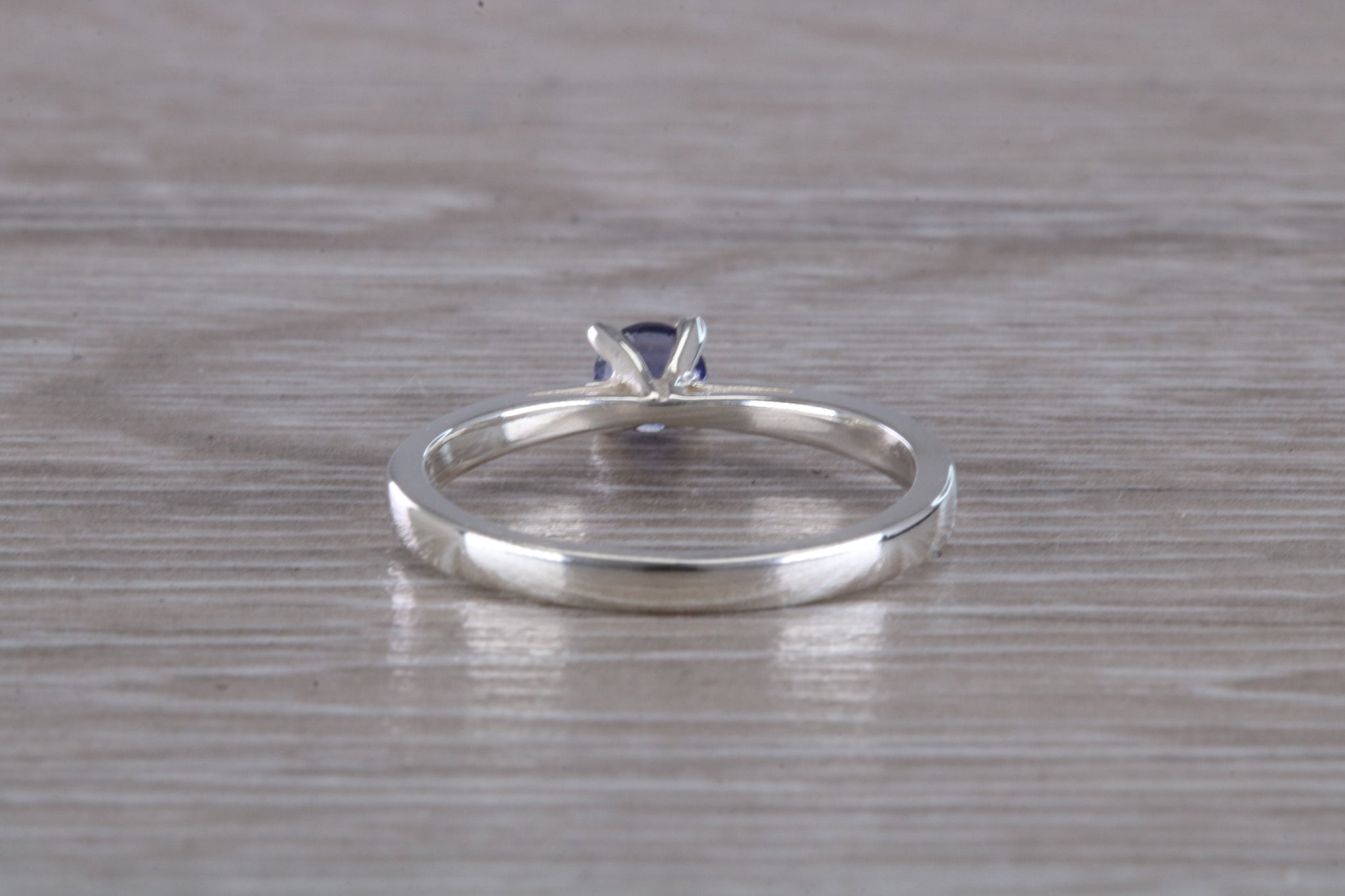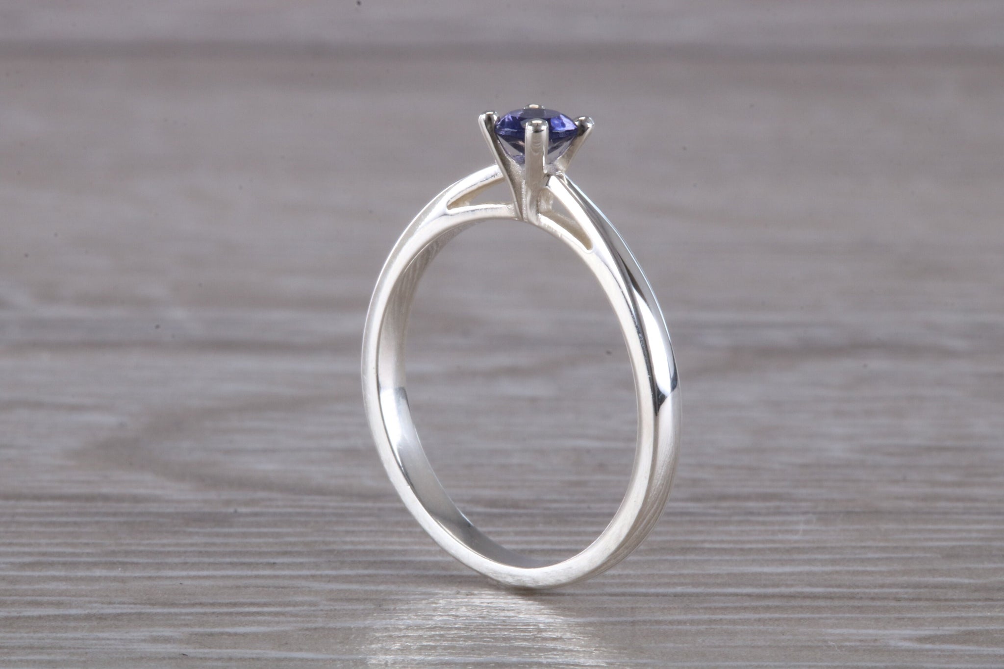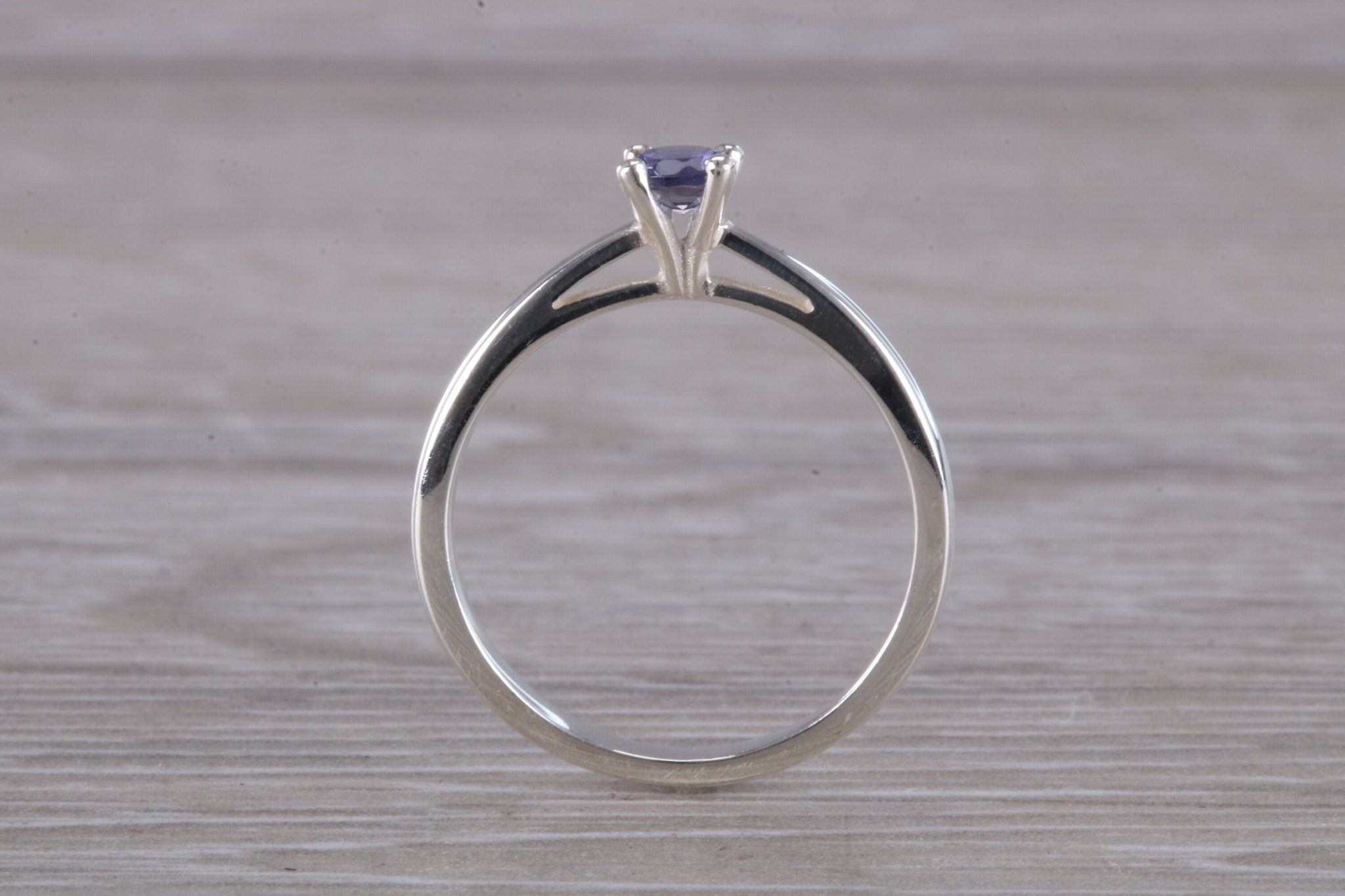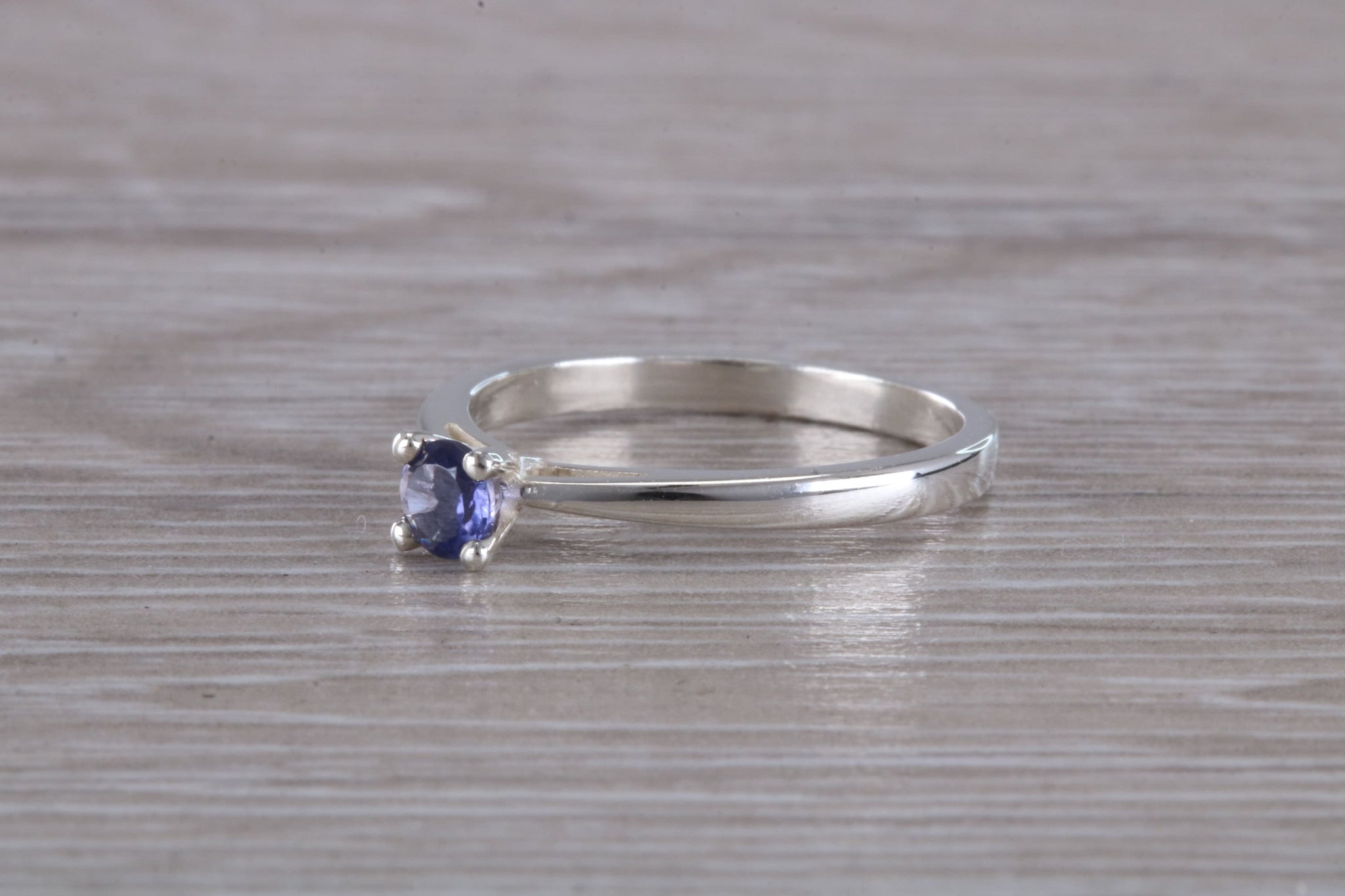 Sterling silver ring set with 4.00 mm round brilliant cut Natural Iolite Gemstone