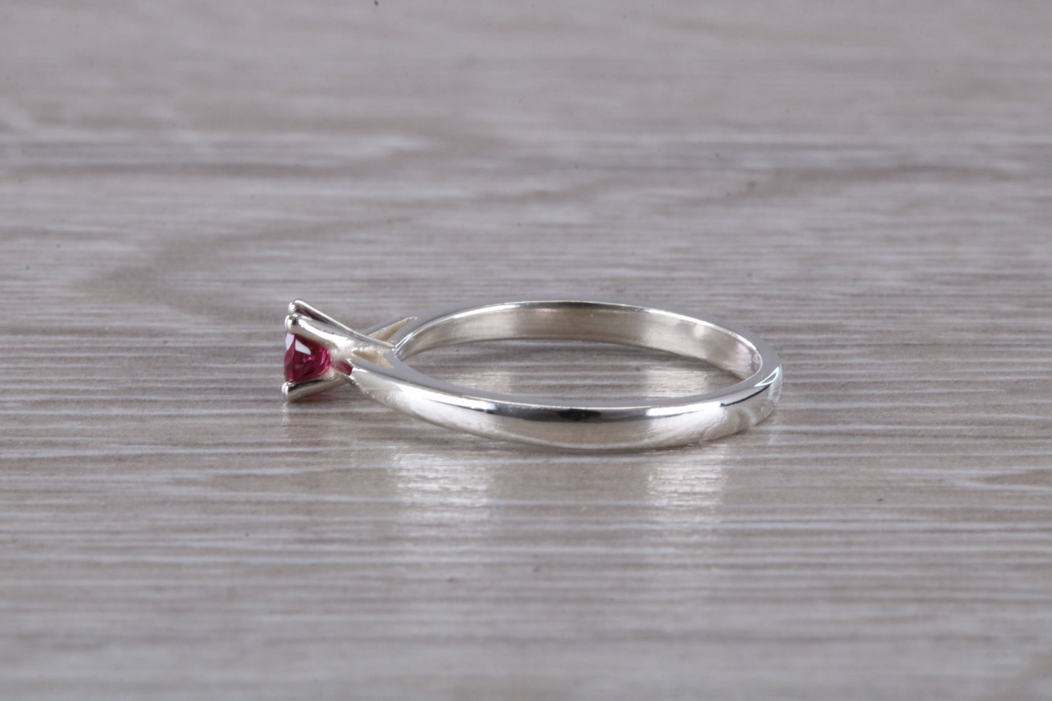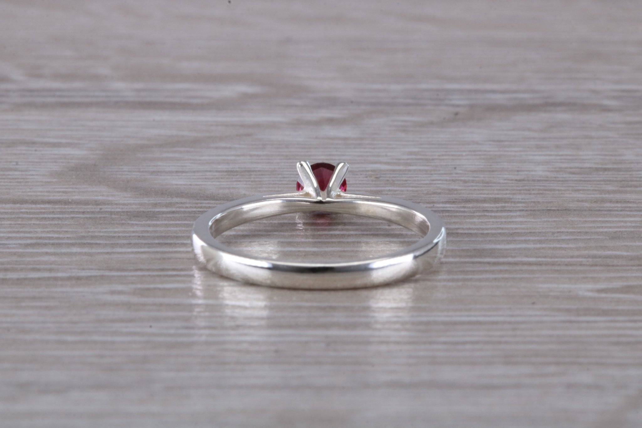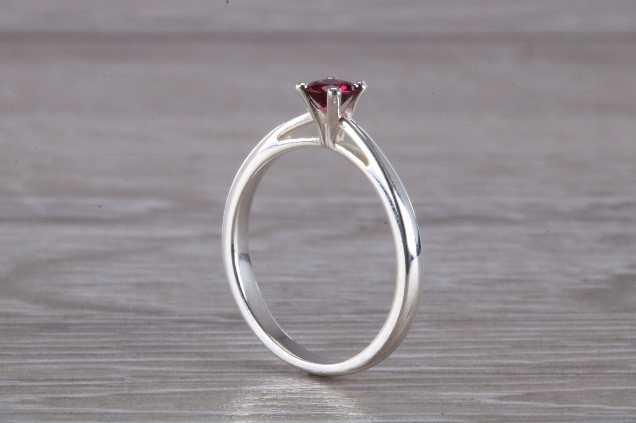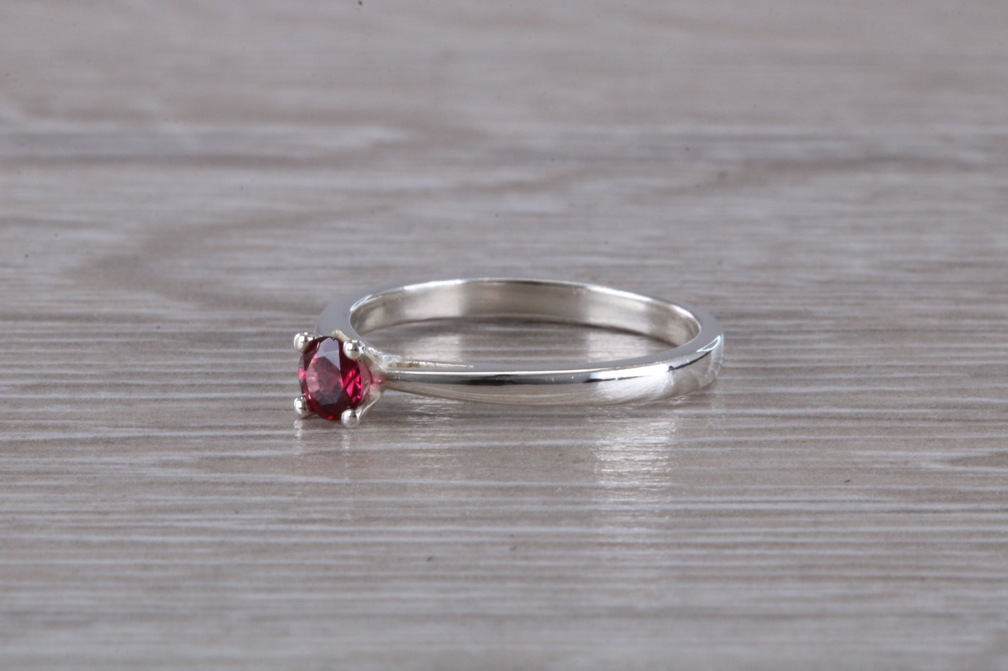 Sterling silver ring set with 5.00 mm round brilliant cut Natural Rhodolite Garnet Gemstone