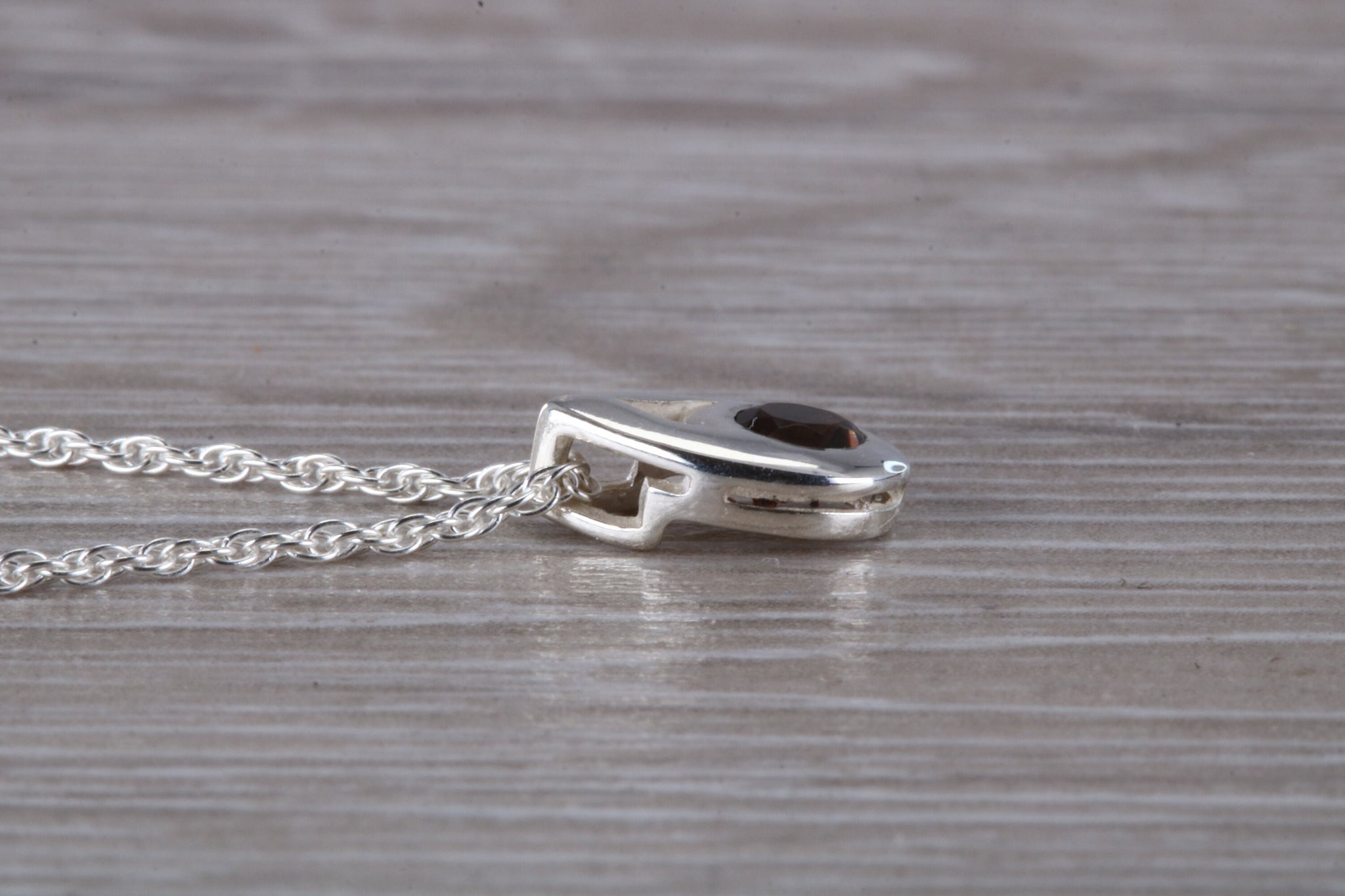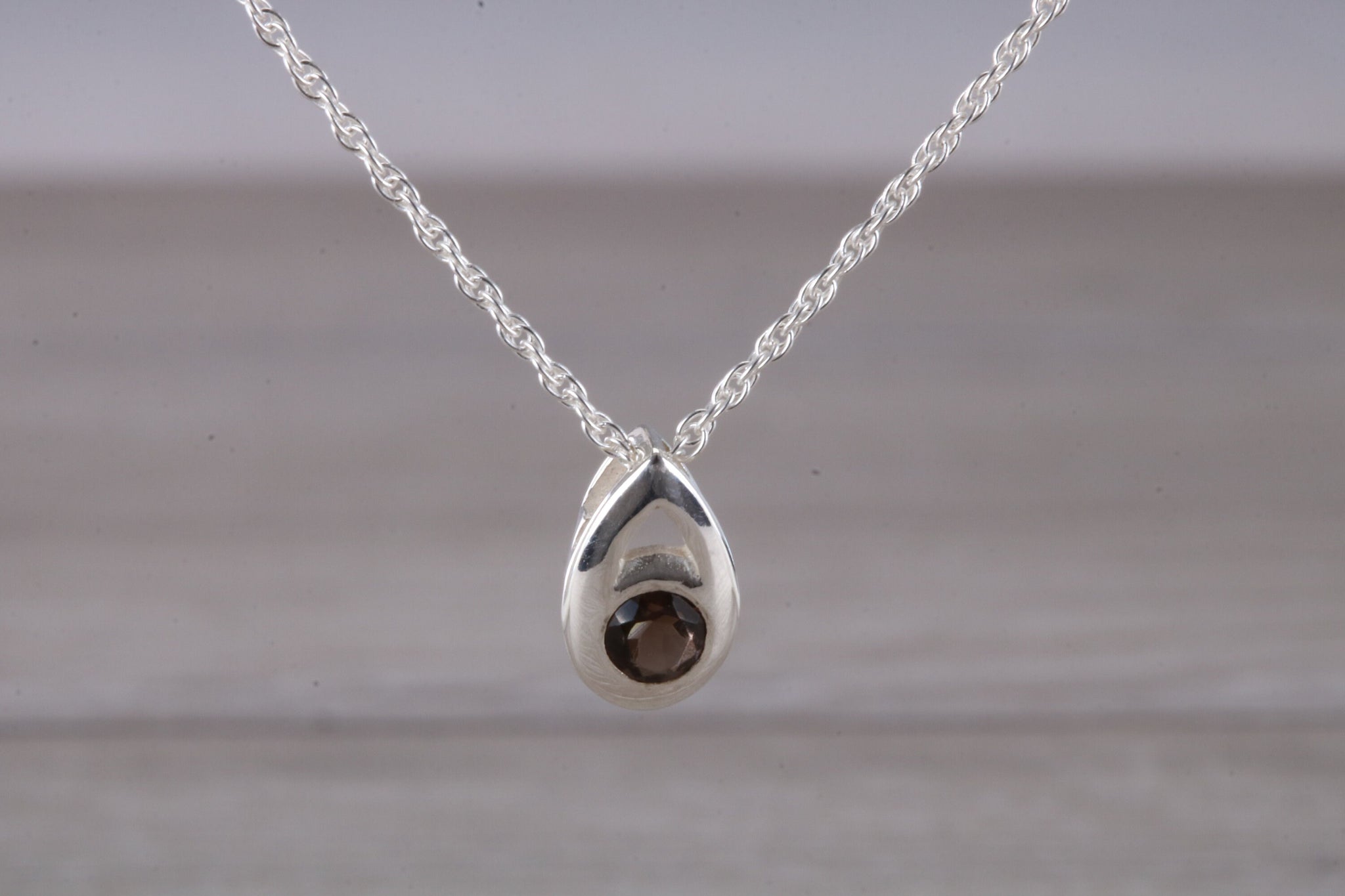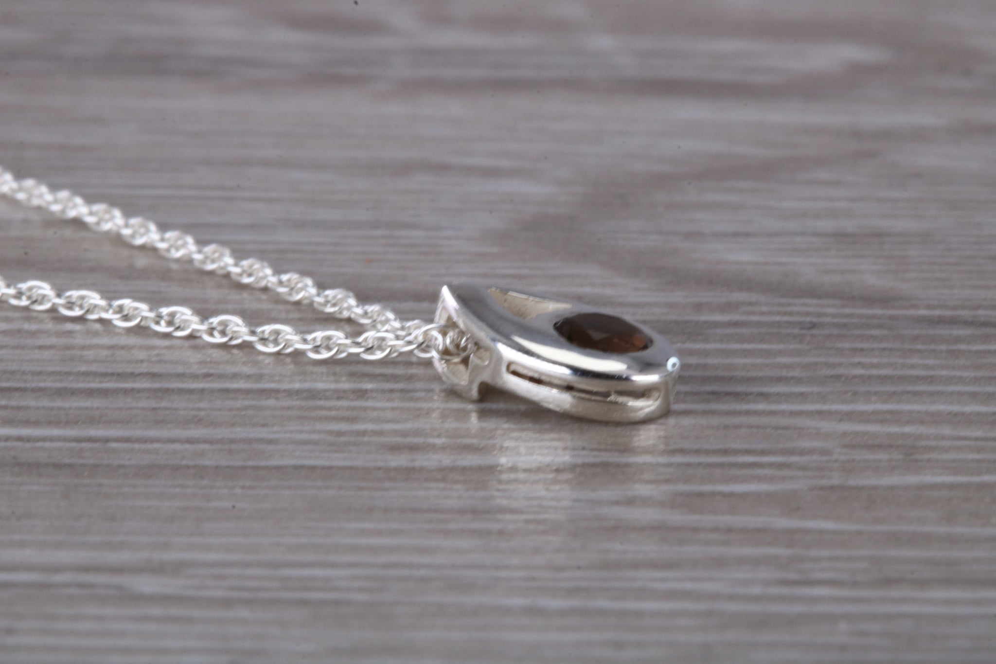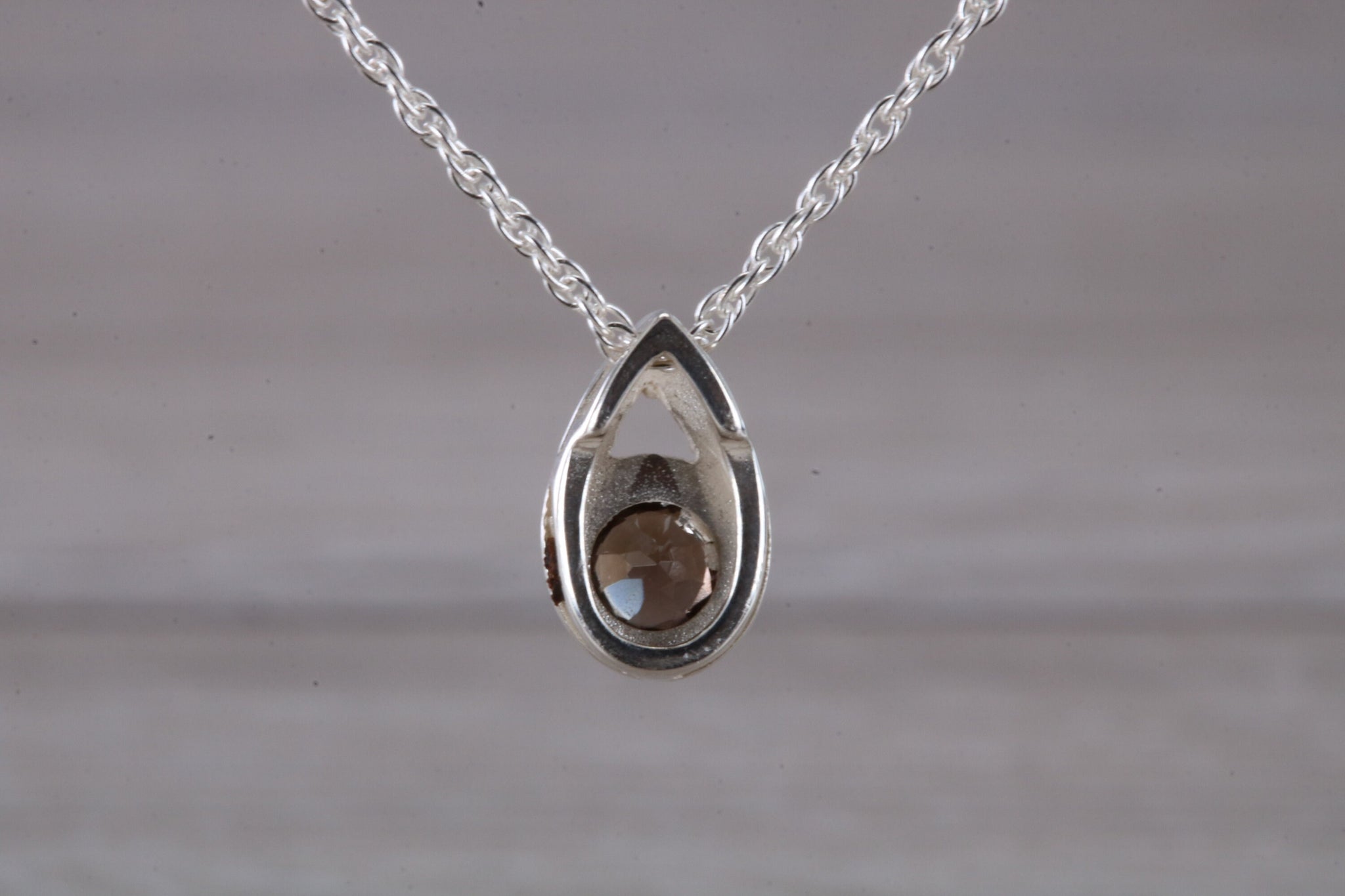 Sterling silver Pendant set with 5.00 mm round brilliant cut Natural Smokey Quartz Gemstone