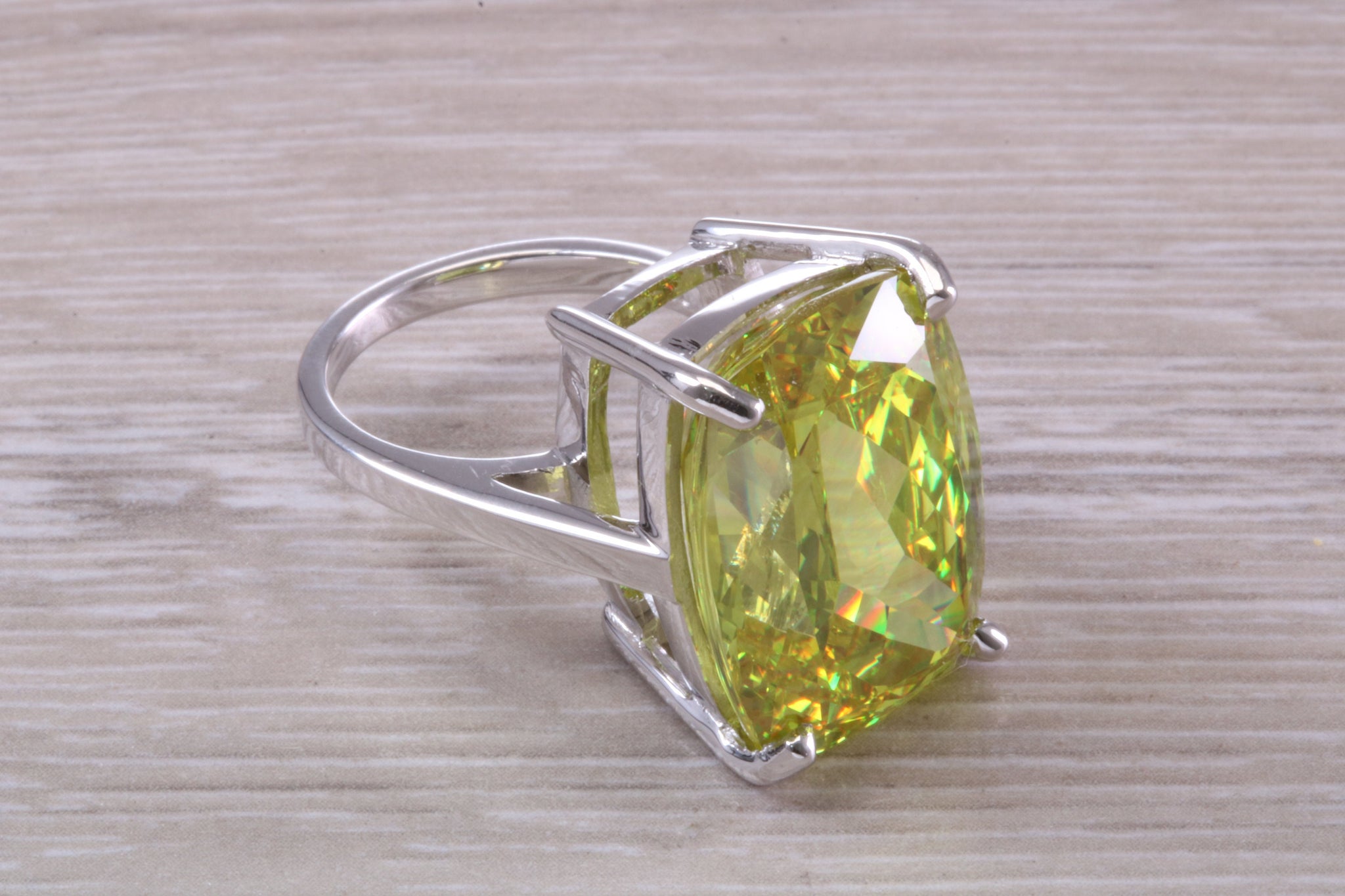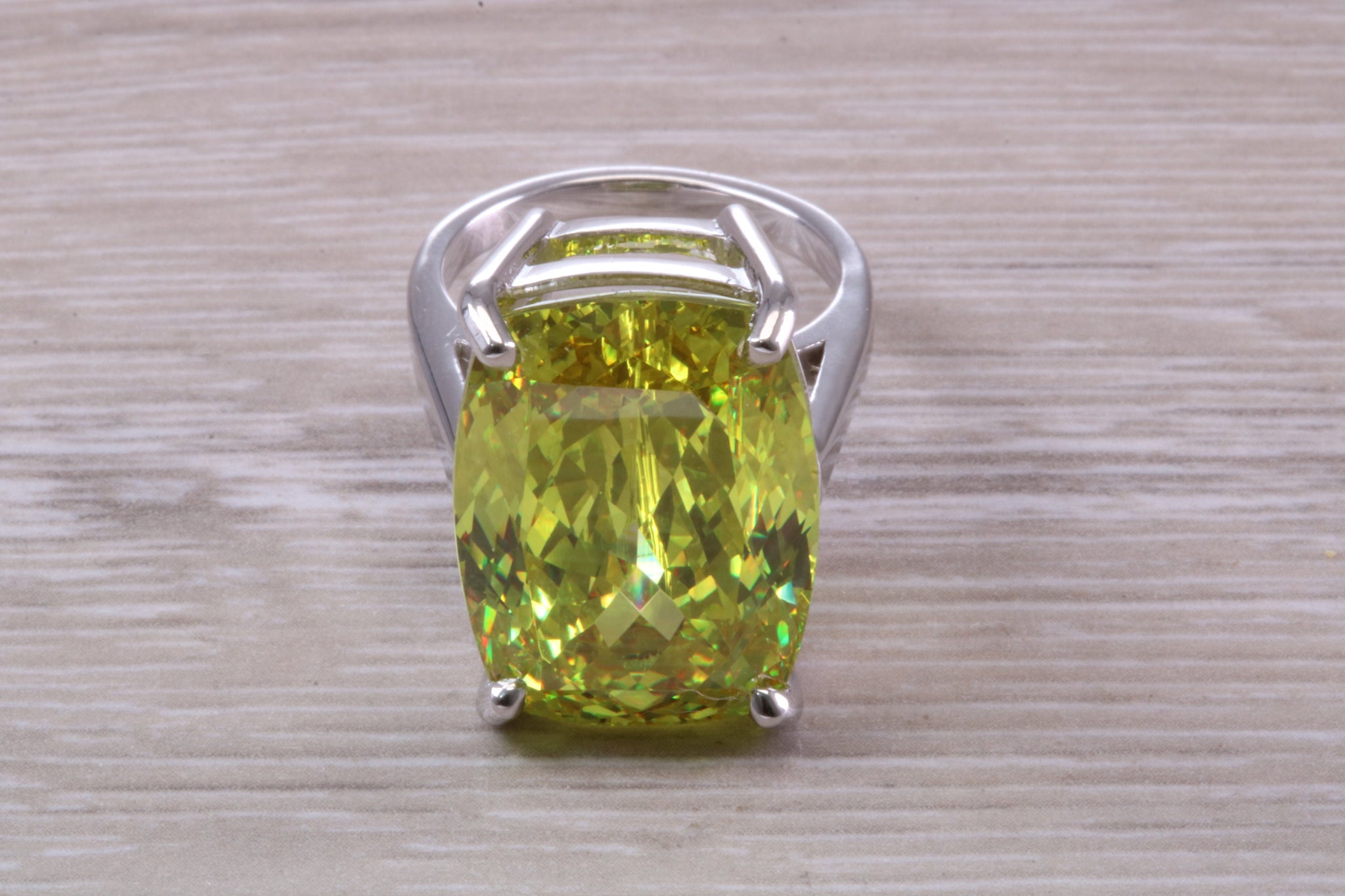 Set with Large Emerald cut Green Peridot Cubic Zirconia