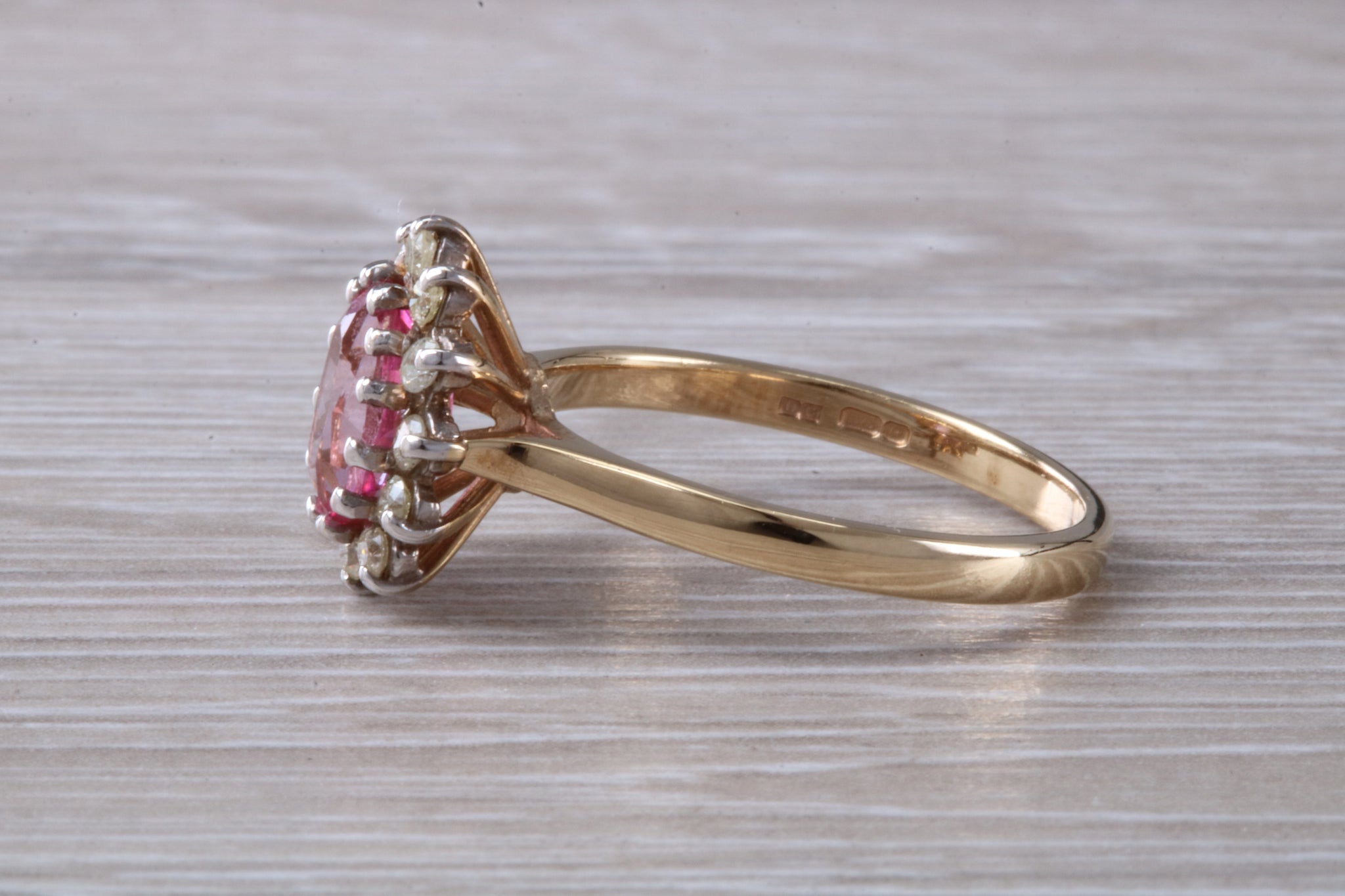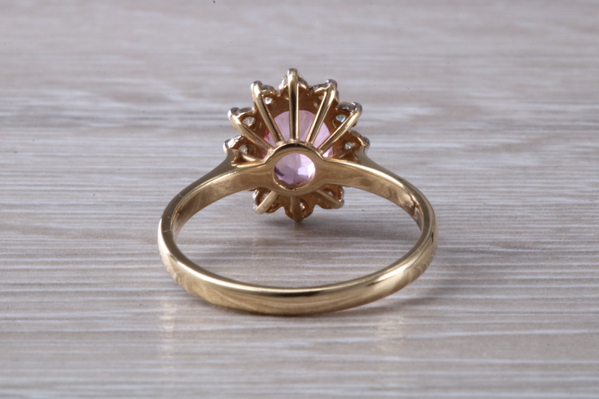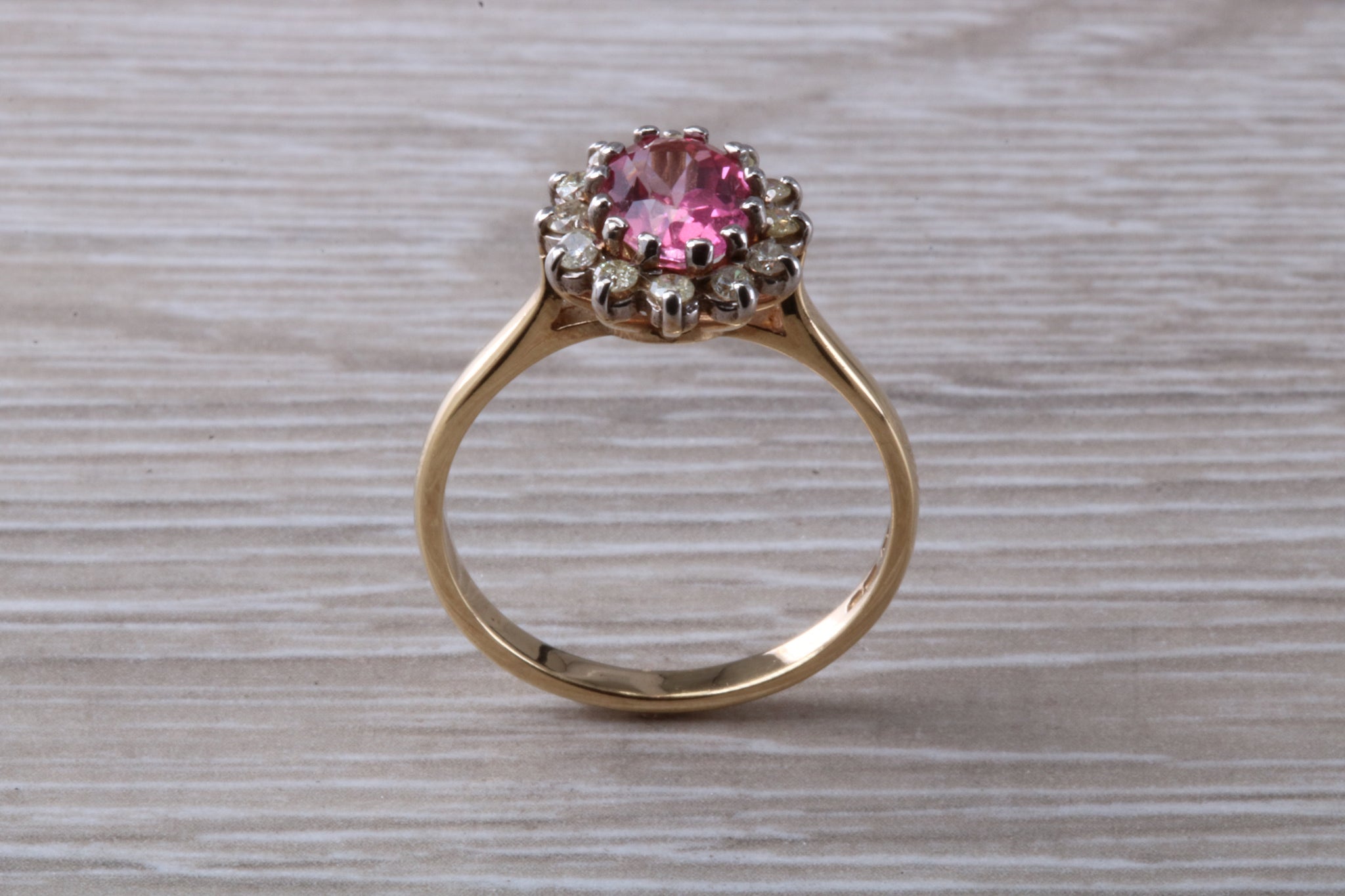 Ladies 9ct yellow and white gold ring set with top grade Pink Topaz and natural Diamonds