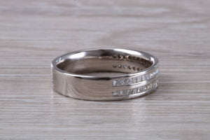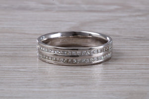 Very beautiful and very very dressy band made from 18ct white gold and half set with two rows of top grade square princess cut diamonds