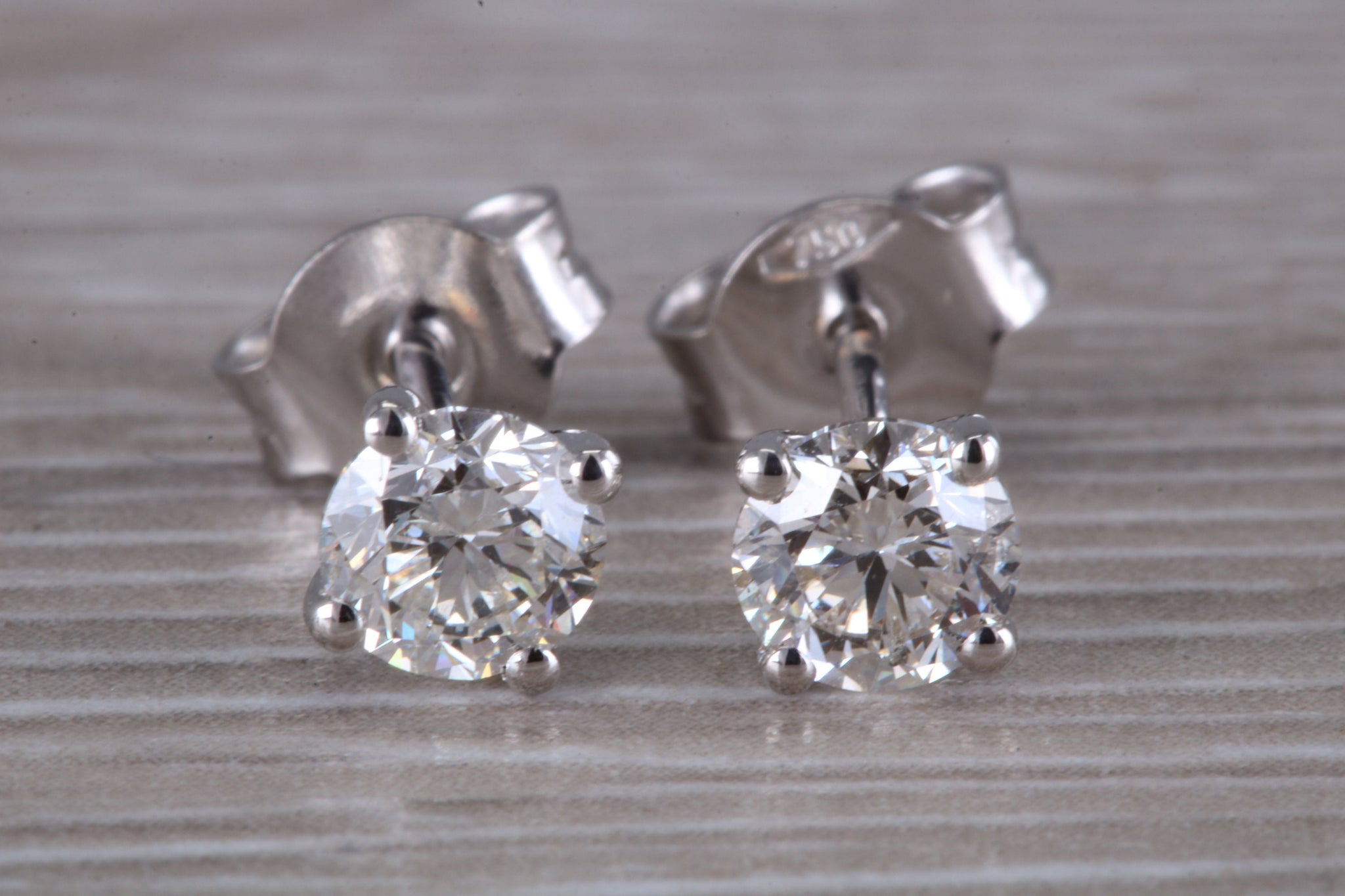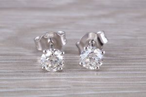 Set with round cut diamonds weighing One carat in total or half carat in each stud and set in 18 carat white gold