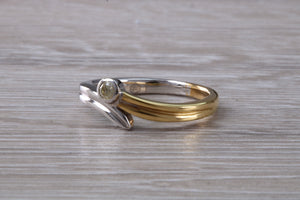 Ladies 18ct white and yellow gold natural Diamond set ring with a twist shank
